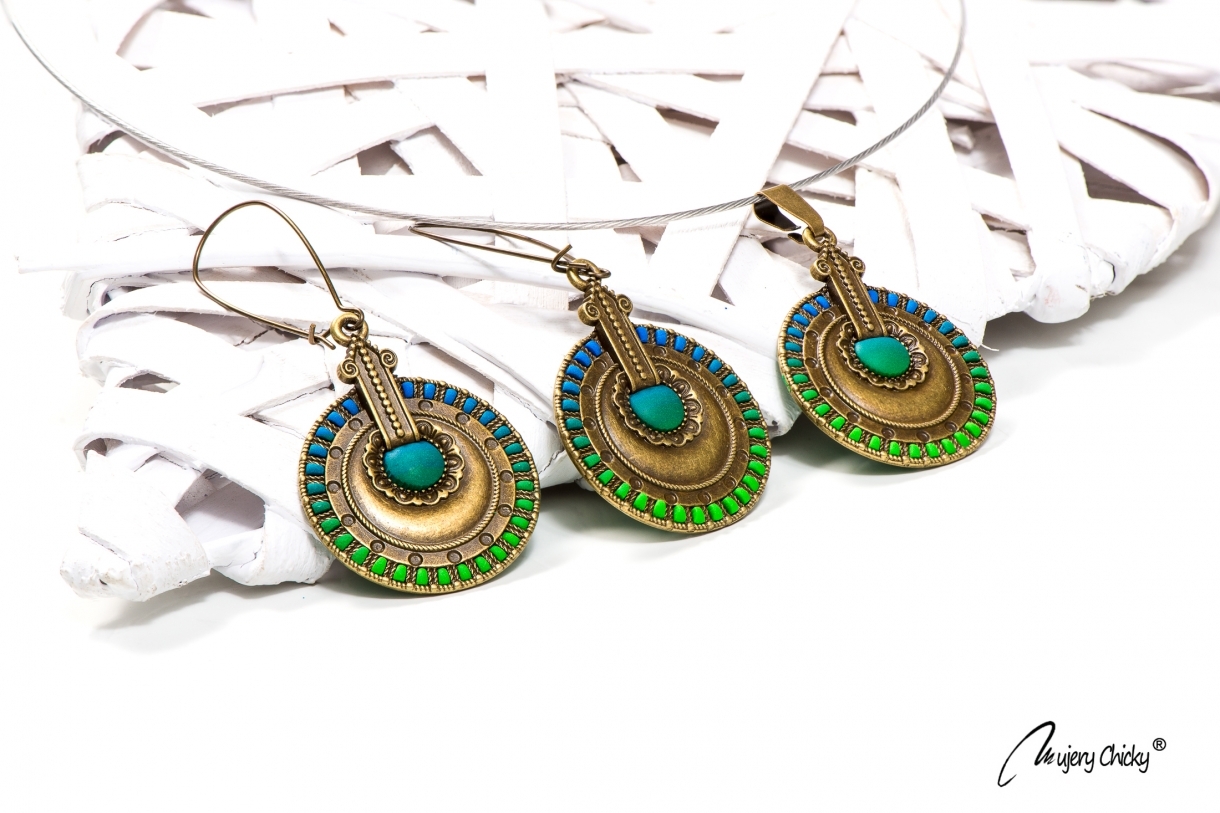 Cerceii și colierul Silent sunt confecționate manual prin tehnica applique, din lut polimeric, pe bază metalică cu finisaj bronz antichizat.
