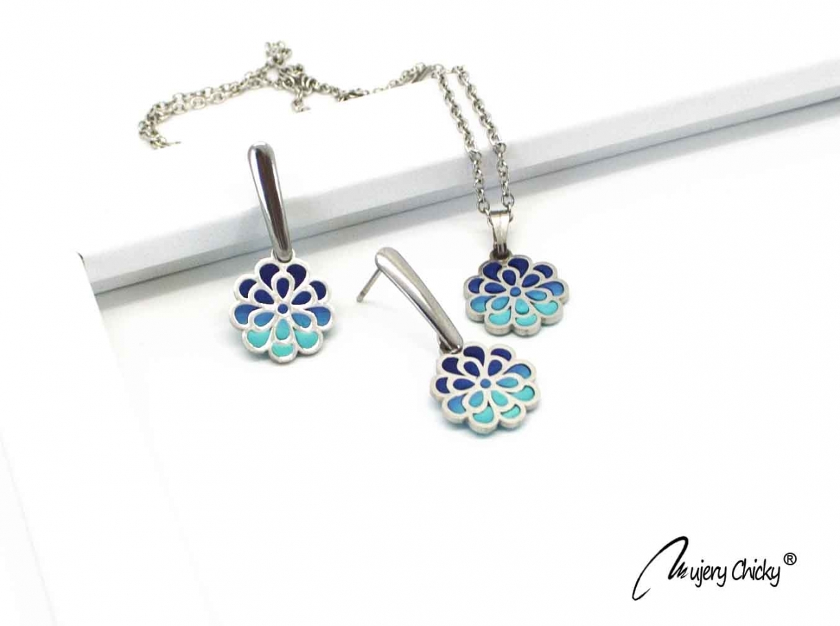 Setul cercei și colier Flower lucrate manual din lut polimeric și oțel inoxidabil, se asortează cu ușurință la o ținută office sau pentru un eveniment deosebit.