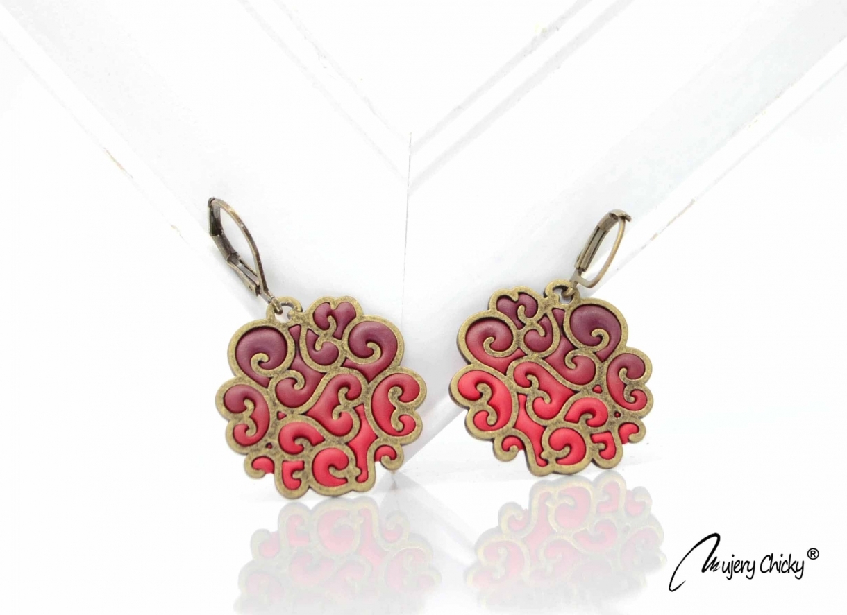 Cerceii Plume Brandy în stil vintage sunt confecționați manual prin tehnica applique, din lut polimeric, pe bază metalică cu finisaj bronz.