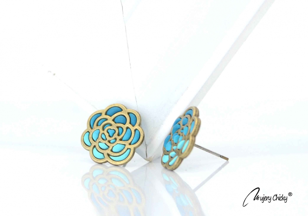 Cerceii Flower Power - Lagoon lucrați manual, sunt inspirați de culorile naturii. Păstrează pentru tine cerceii handmade deosebiți și eleganți sau oferă-i cadou unei persoane dragi!