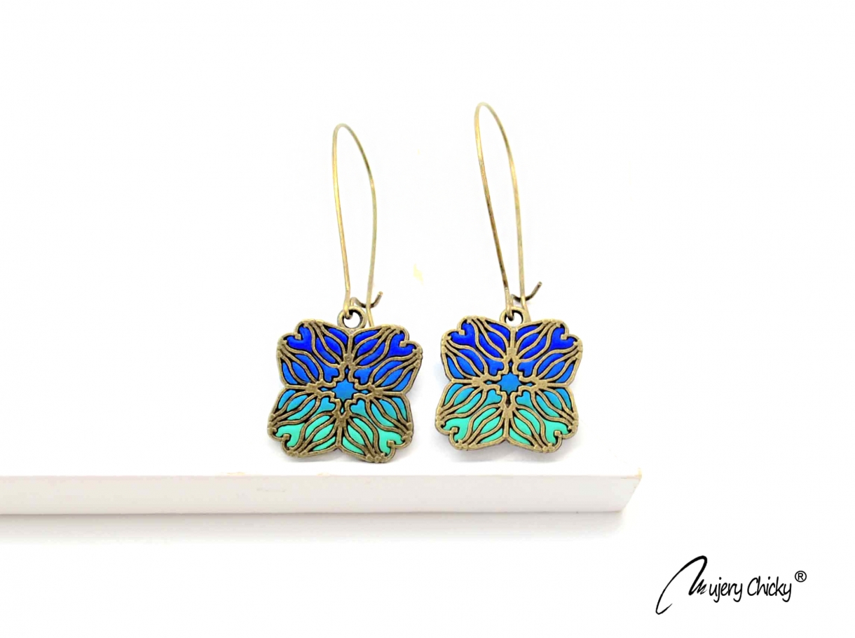 Cerceii Floating Anemia în formă rectangulară lucrați manual, sunt inspirați de culorile naturii. Păstrează pentru tine cerceii handmade deosebiți și eleganți sau oferă-i cadou unei persoane dragi!