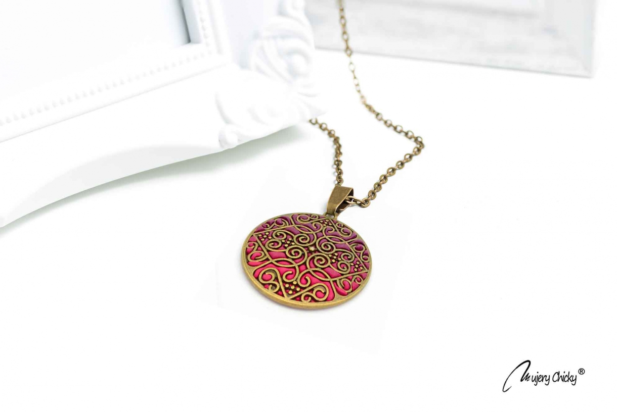 Colierul este confecționat manual prin tehnica applique, din lut polimeric în degrade, pe bază metalică cu finisaj bronz antic. Degradeul cromatic este realializat prin modelaj.