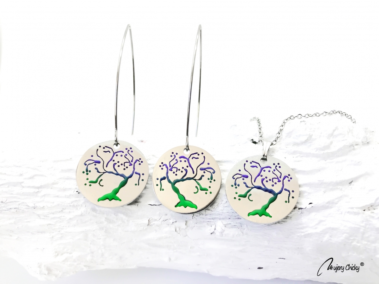 Cerceii și colierul sunt confecționate manual prin tehnica applique, din lut polimeric, pe bază din oțel inoxidabil.