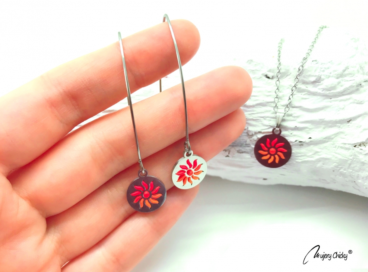 Setul Cercei si Colier lucrate manual din inox si lut polimeric. Se asorteaza cu usurinta la o tinuta office sau pentru un eveniment deosebit.