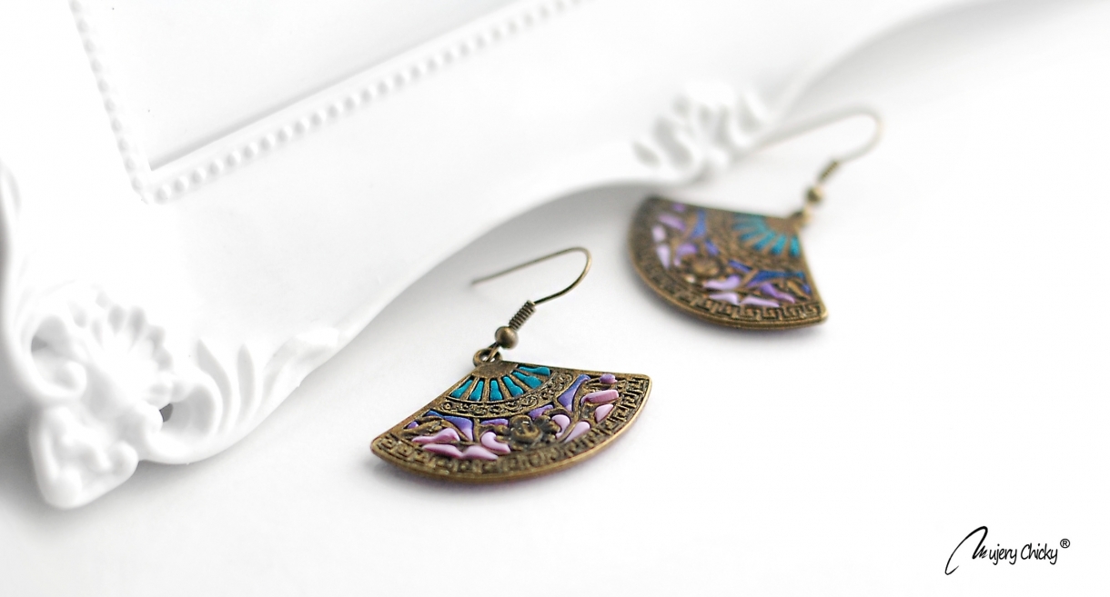 Cerceii Evantai - Vivid lucrați manual, aduc o notă exotică look-ului tău, fie că mergi la birou, în oraș, sau la un eveniment special.