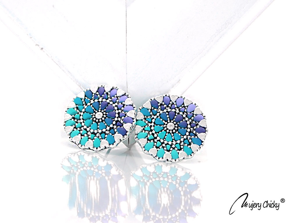 Cerceii Mandală sunt confecționați manual prin tehnica applique, din lut polimeric, pe bază metalică cu finisaj din oțel inoxidabil.