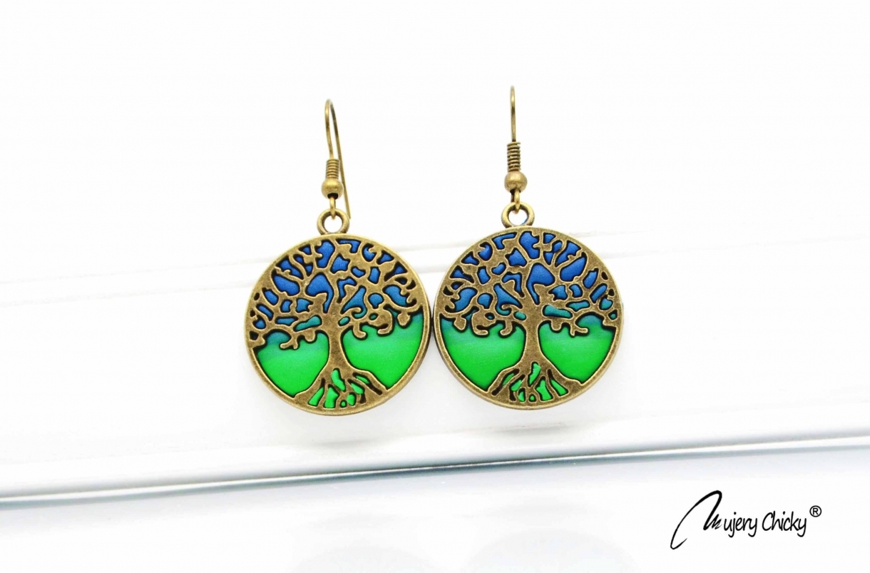 Cerceii în formă de copac al vieții, inspirați de culorile naturii, sunt lucrați manual prin tehnica applique, din lut polimeric, pe bază metalică cu finisaj bronz antichizat.