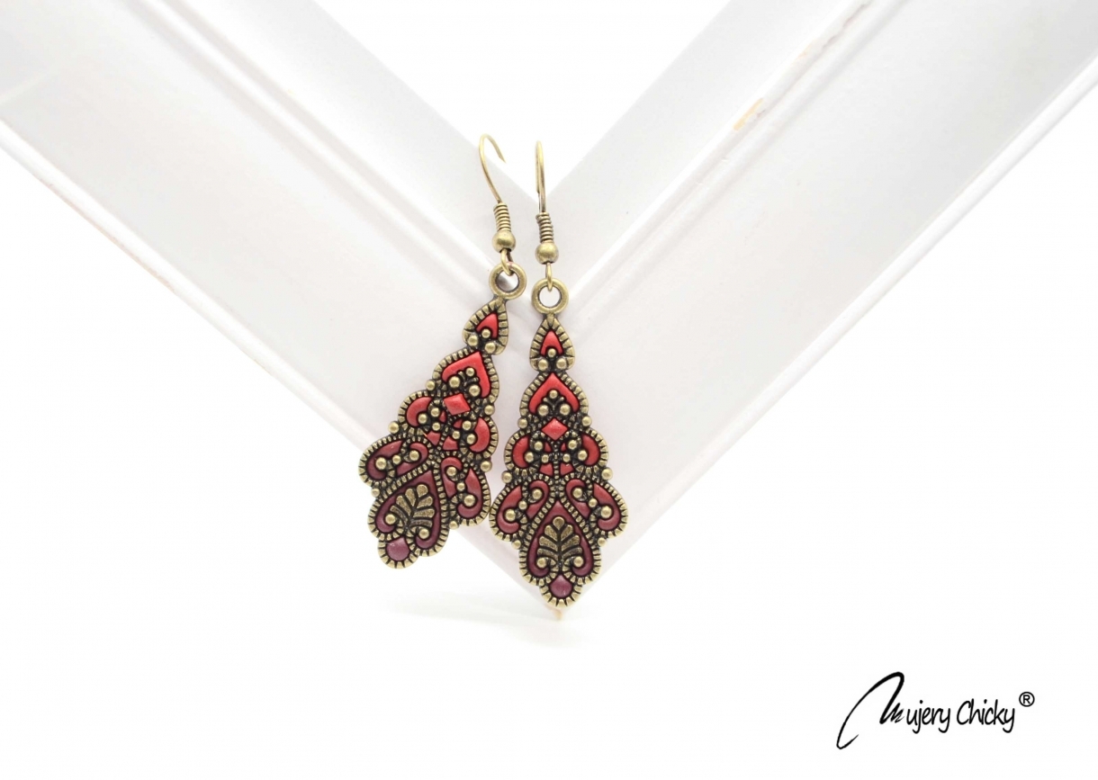 Cerceii în stil vintage Regal - Brandy sunt lucrați manual prin tehnica applique, din lut polimeric, pe bază metalică cu finisaj bronz antichizat.