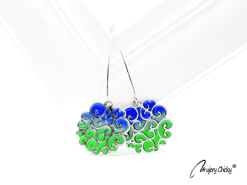 Cerceii Plume în stil vintage sunt confecționați manual prin tehnica applique, din lut polimeric, pe bază metalică cu finisaj argintiu.