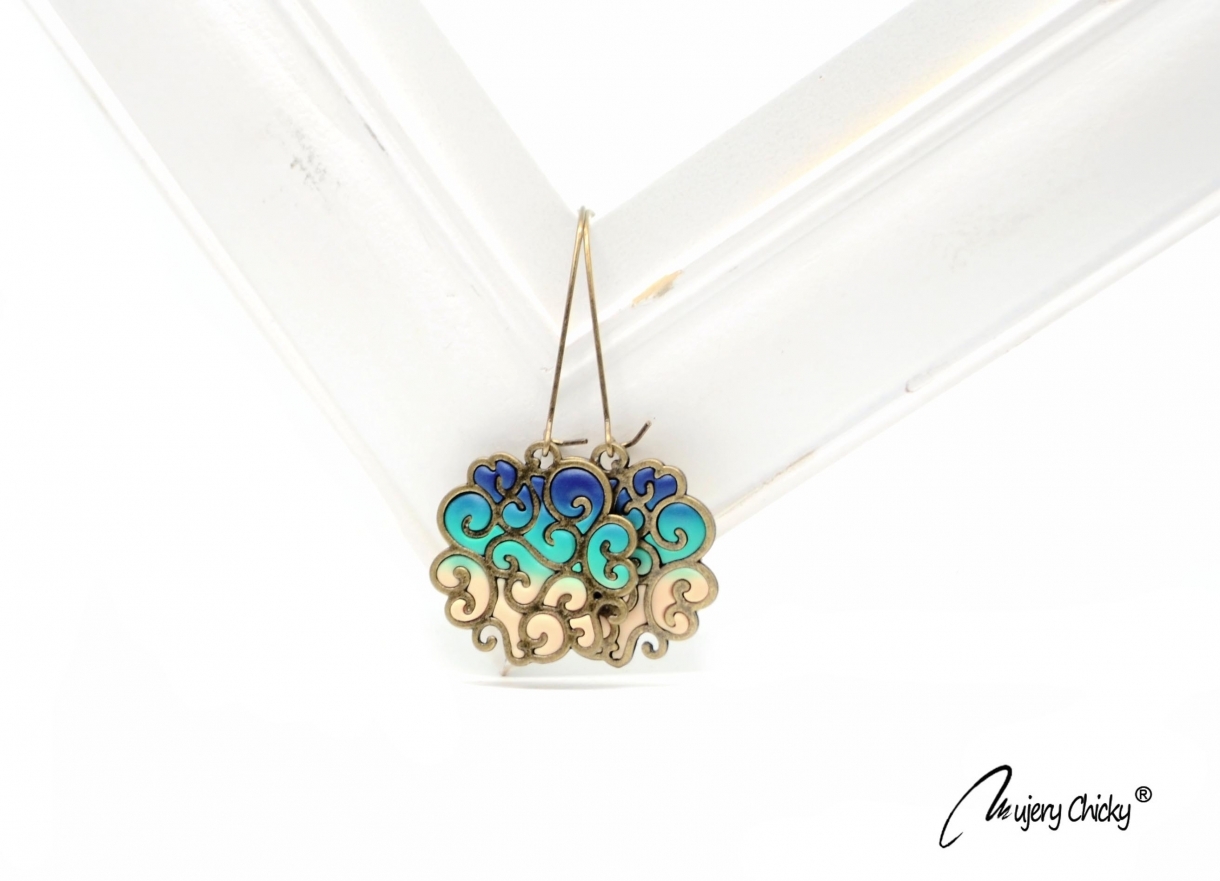 Cerceii Plume în stil vintage sunt confecționați manual prin tehnica applique, din lut polimeric, pe bază metalică cu finisaj bronz.