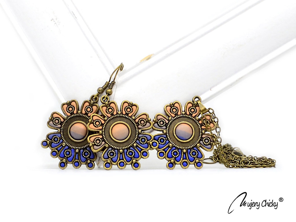 Cerceii și colierul Incaș sunt confecționate manual prin tehnica applique, din lut polimeric, pe bază din bronz.