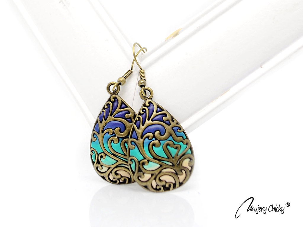 Cerceii Lumis - Pirouette în formă de lacrimă în stil vintage, lucrați manual prin tehnica applique, din lut polimeric, pe bază metalică cu finisaj bronz antichizat.