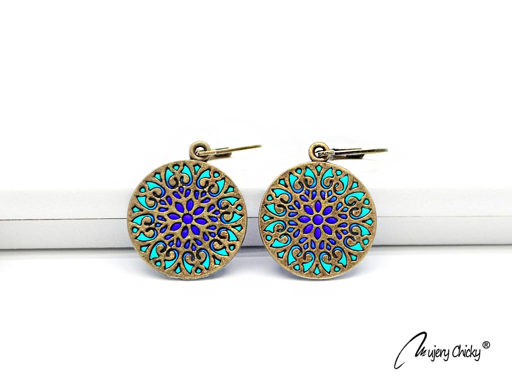 Cerceii Bloom - Lagoon lucrați manual, în formă de mandală ce simbolizează cheia spre poarta imaginației. Se potrivesc de minune la o ținută pentru birou, pentru o seară în oraș, sau la un eveniment special.