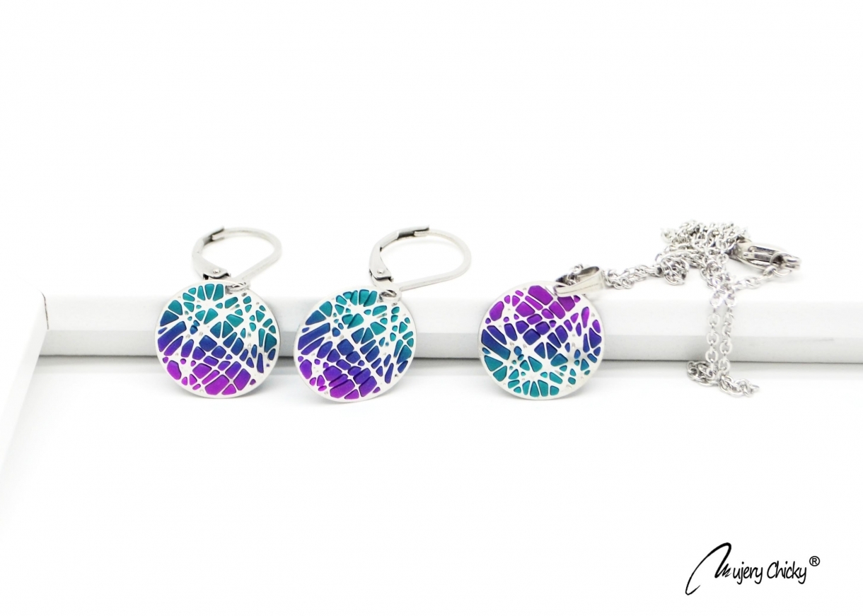 Cerceii și colierul sunt confecționate manual prin tehnica applique, din lut polimeric, pe bază din oțel inoxidabil.