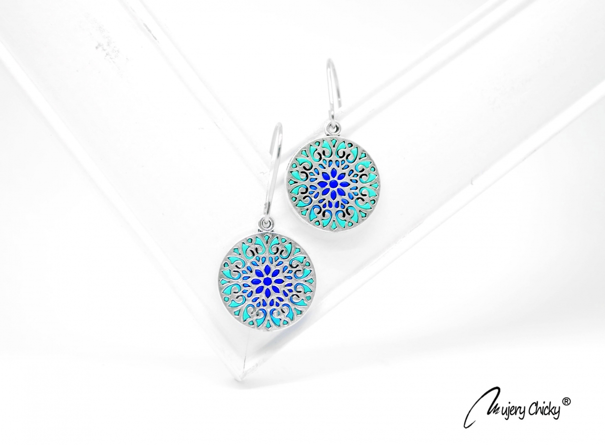 Cerceii Bloom argintiu - Lagoon lucrați manual, în formă de mandală ce simbolizează cheia spre poarta imaginației. Se potrivesc de minune la o ținută pentru birou, pentru o seară în oraș, sau la un eveniment special.