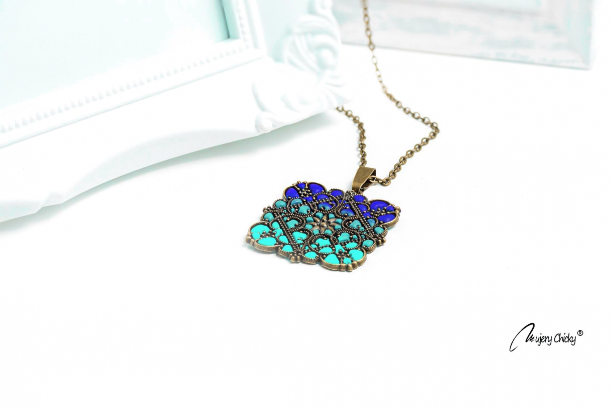 Colier stil vintage cu model filigran, Journey - Brilliant lucrat manual, în nuanțe degrade. Îl poți asorta cu ușurință la o cămașă albă și o pereche de jeansi, sau la o rochie simplă de seară.