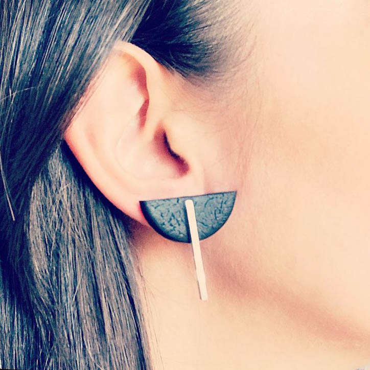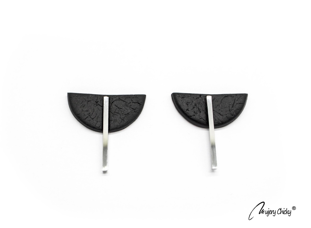 Cerceii geometrici asimetrici Isra fac parte din Colecția Underground, sunt lucrați manual din lut polimeric texturat cu aspect de piele și oțel inoxidabil.