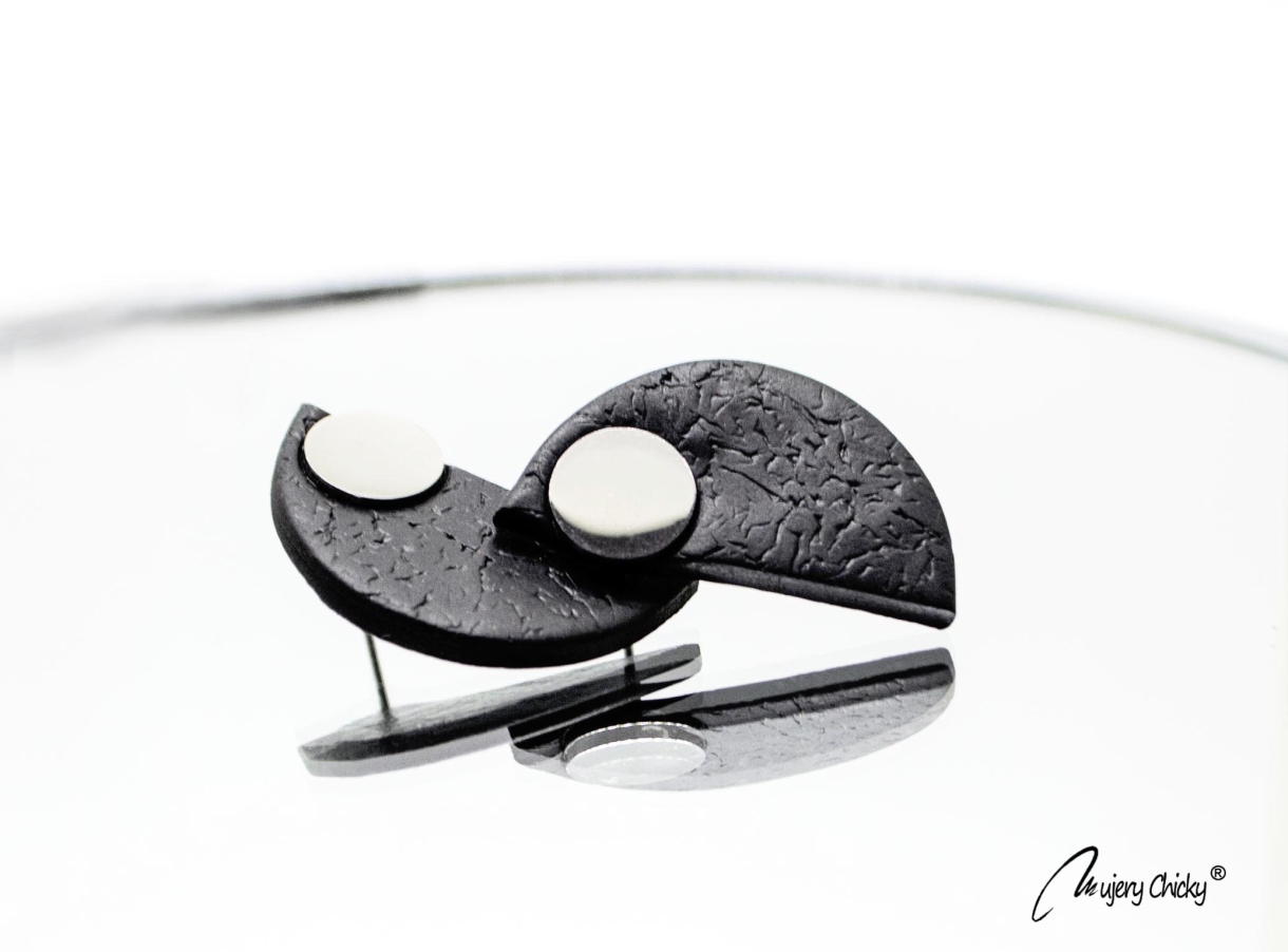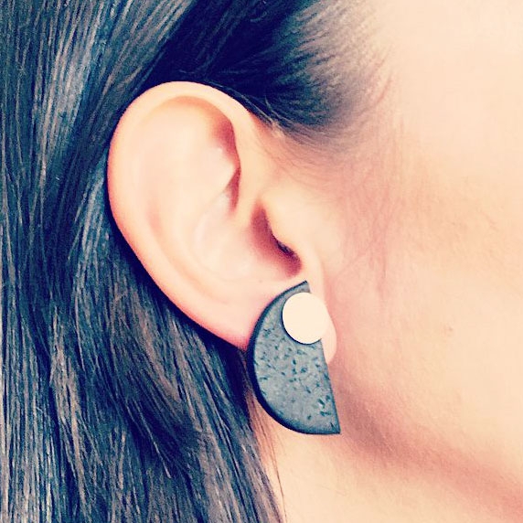 Cerceii geometrici asimetrici Kalida fac parte din Colecția Underground, sunt lucrați manual din lut polimeric texturat cu aspect de piele și oțel inoxidabil.