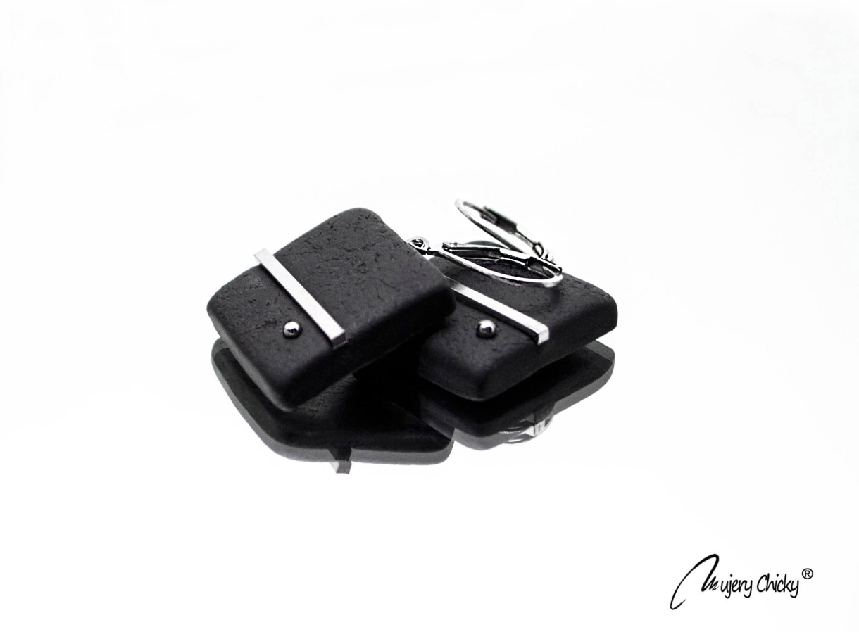 Cerceii geometrici asimetrici Fathia fac parte din Colecția Underground, sunt lucrați manual din lut polimeric texturat cu aspect de piele și oțel inoxidabil.