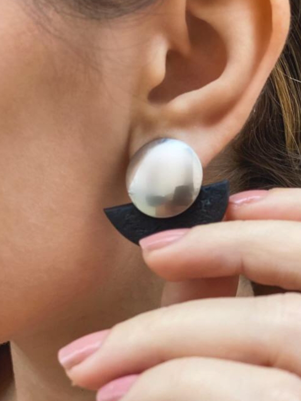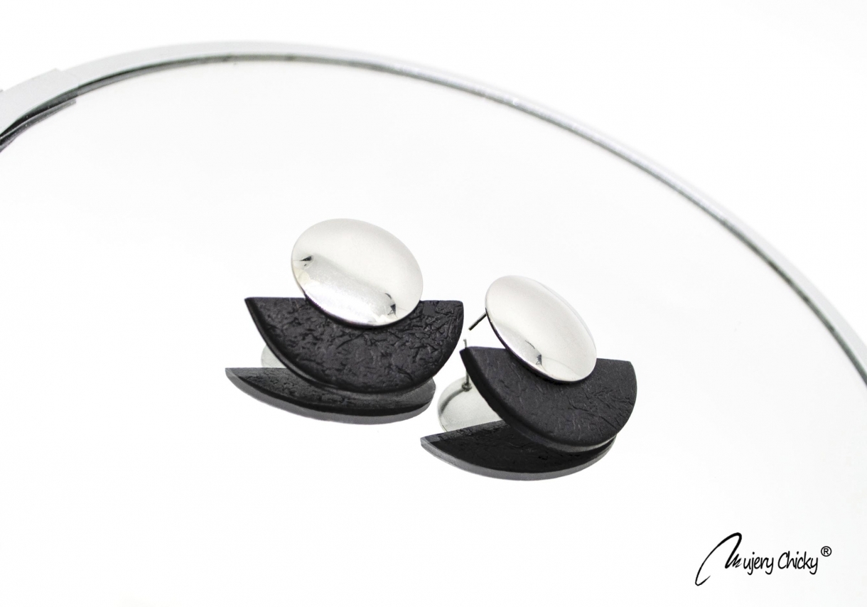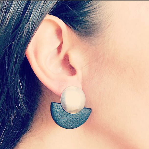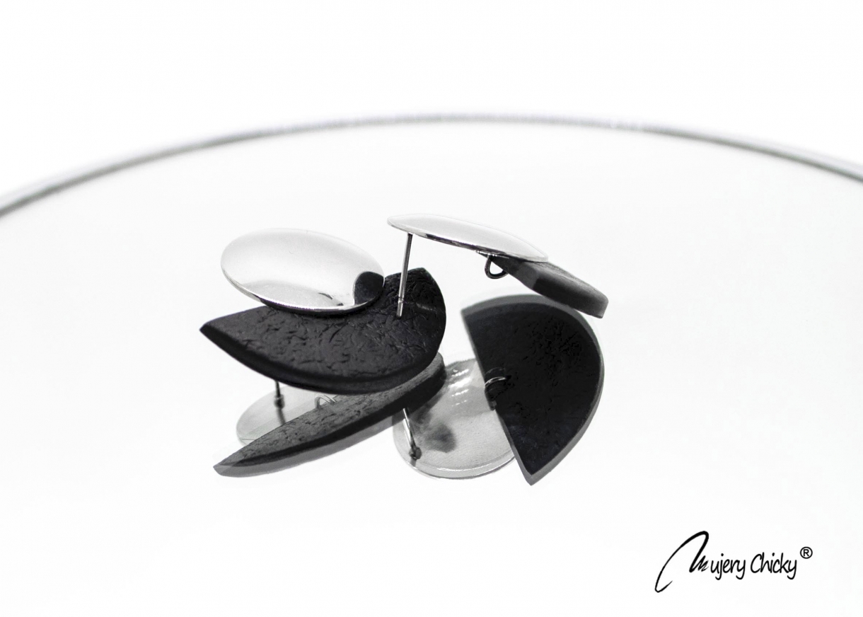 Cerceii geometrici asimetrici Daruka fac parte din Colecția Underground, sunt lucrați manual din lut polimeric texturat cu aspect de piele și oțel inoxidabil.