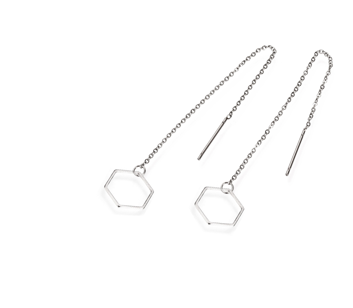 Cerceii asimetrici Lănțișor Hexagon fac parte din Colecția Minimal, sunt o pereche de cercei populari, simpli și de efect, confecționați din oțel inoxidabil.