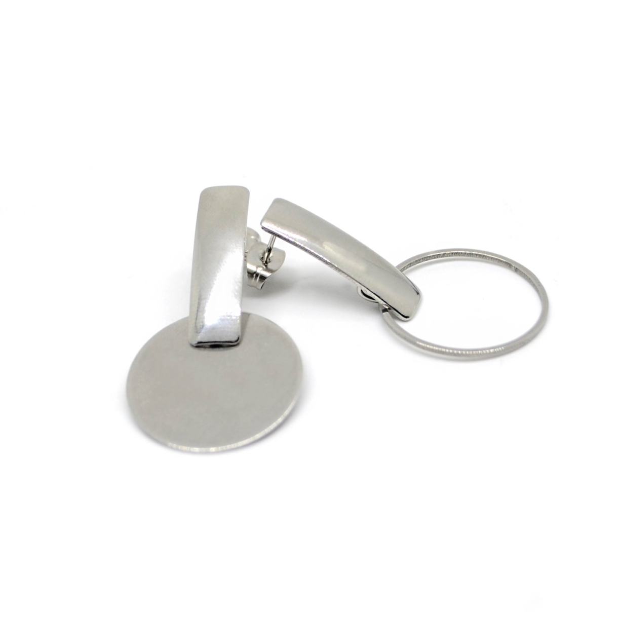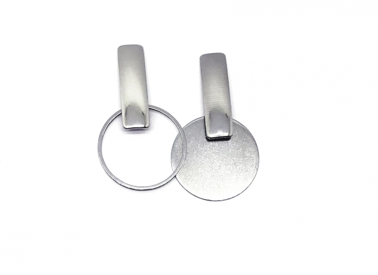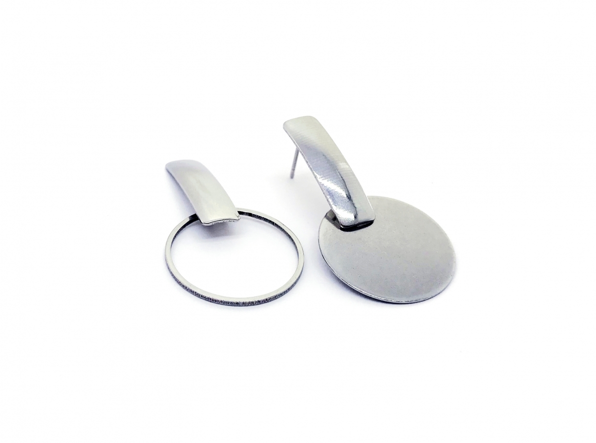 Cerceii asimetrici In-Out fac parte din Colecția Minimal, sunt o pereche de cercei populari, simpli și de efect, confecționați din oțel inoxidabil.