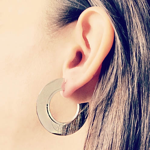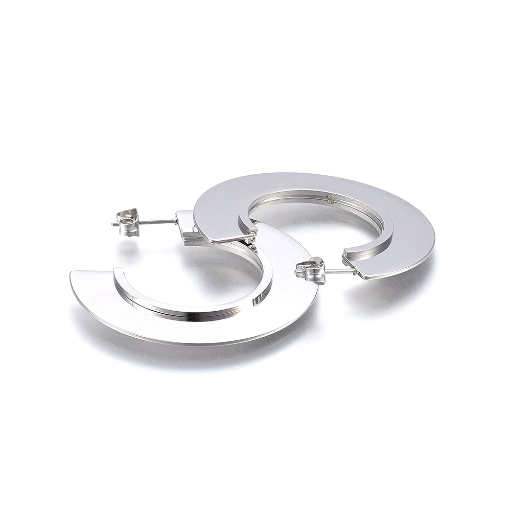 Cerceii asimetrici Half Disc fac parte din Colecția Minimal, sunt o pereche de cercei populari, simpli și de efect, confecționați din oțel inoxidabil.