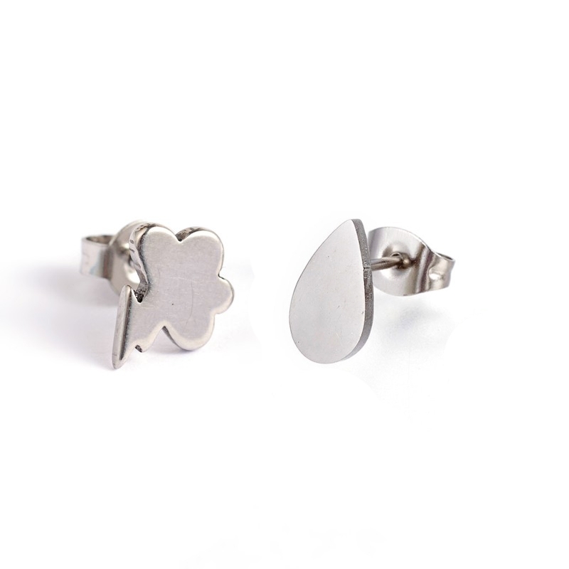 Cerceii asimetrici Nor cu fulger si picatura de ploaie fac parte din Colecția Minimal, sunt o pereche de cercei populari, simpli și de efect, confecționați din oțel inoxidabil.