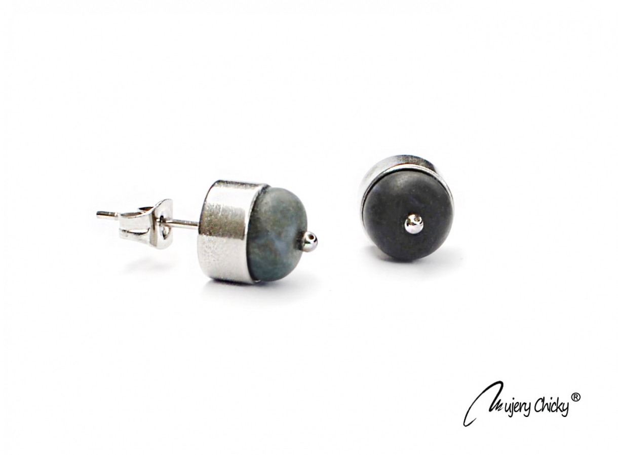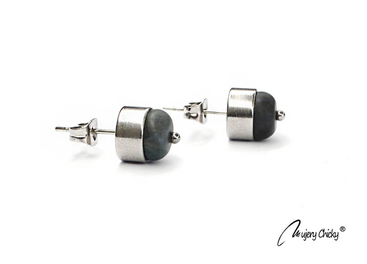 Cercei confecționați din mărgele de agată nuanță Moss, piatră semiprețioasă cu aspect glacial, montat pe o bază din inox, cu inserții din oțel inoxidabil.