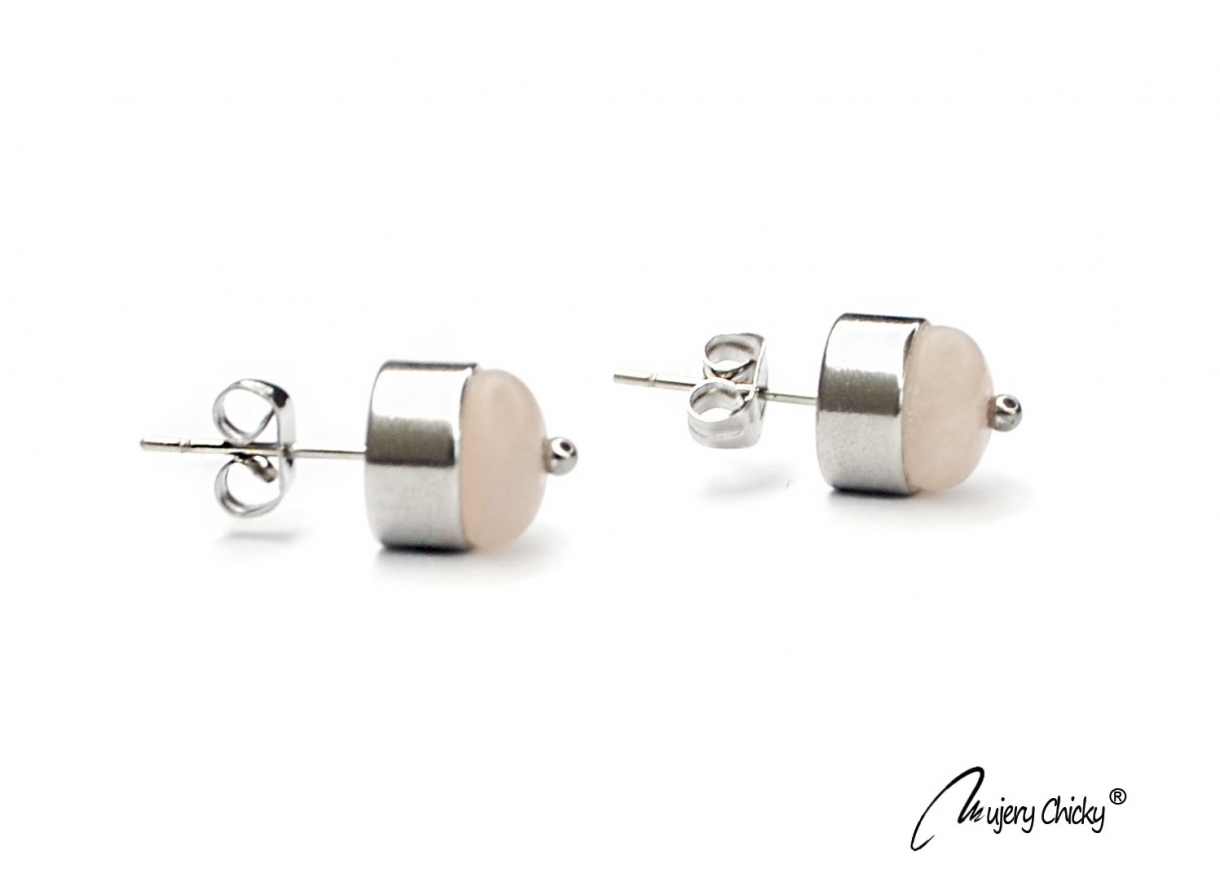 Cercei confecționați din mărgele de aventurin nuanță gri, piatră semiprețioasă cu aspect glacial, montat pe o bază din inox, cu inserții din oțel inoxidabil.