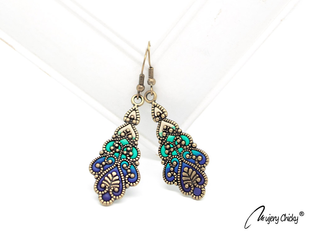 Cerceii în stil vintage Regal - Pirouette sunt lucrați manual prin tehnica applique, din lut polimeric, pe bază metalică cu finisaj bronz antichizat.