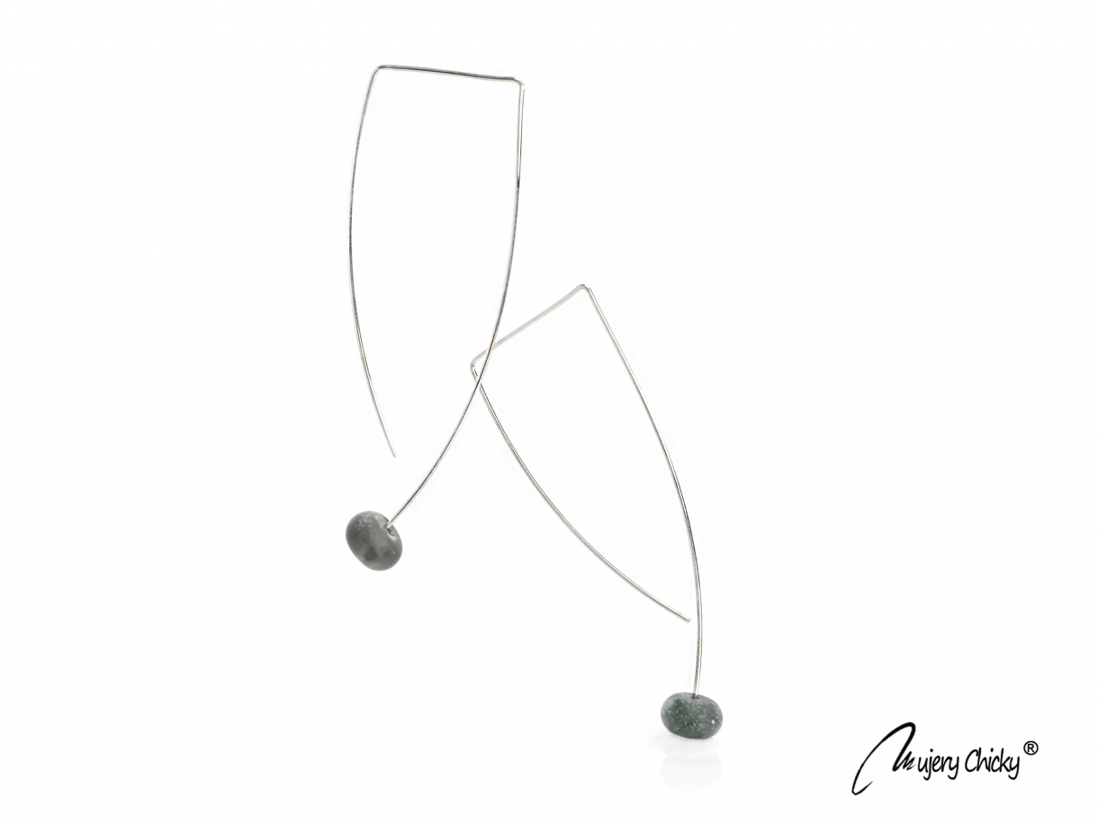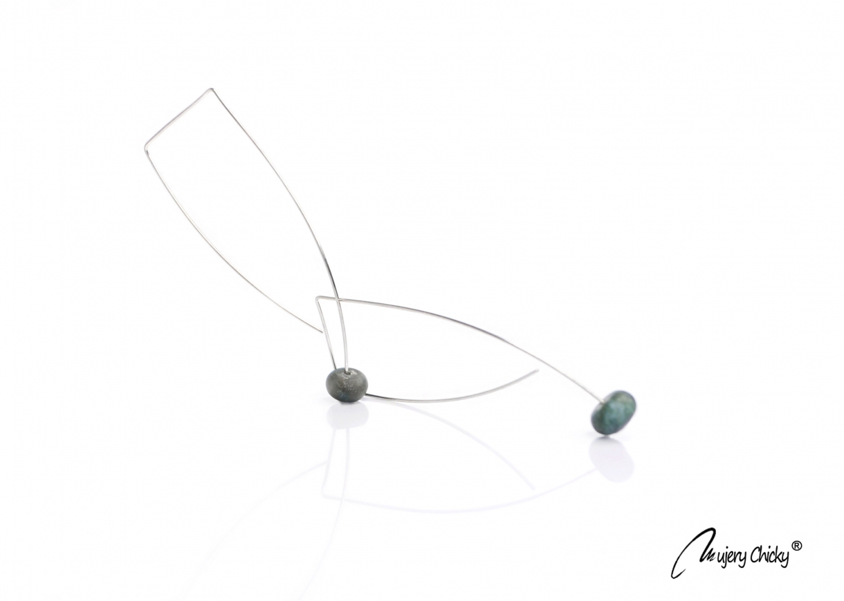 Cercei Morfoza confecționați din mărgele de agată nuanță moss, pietre naturale semiprețioase cu aspect glacial, înșirate pe o tijă din inox.