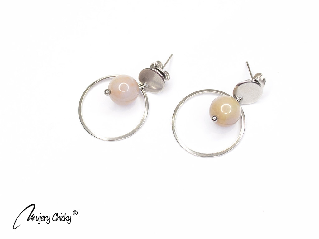 Cercei Circle confecționați cu jad montată pe o tortiță din inox cu tijă în formă rotundă.