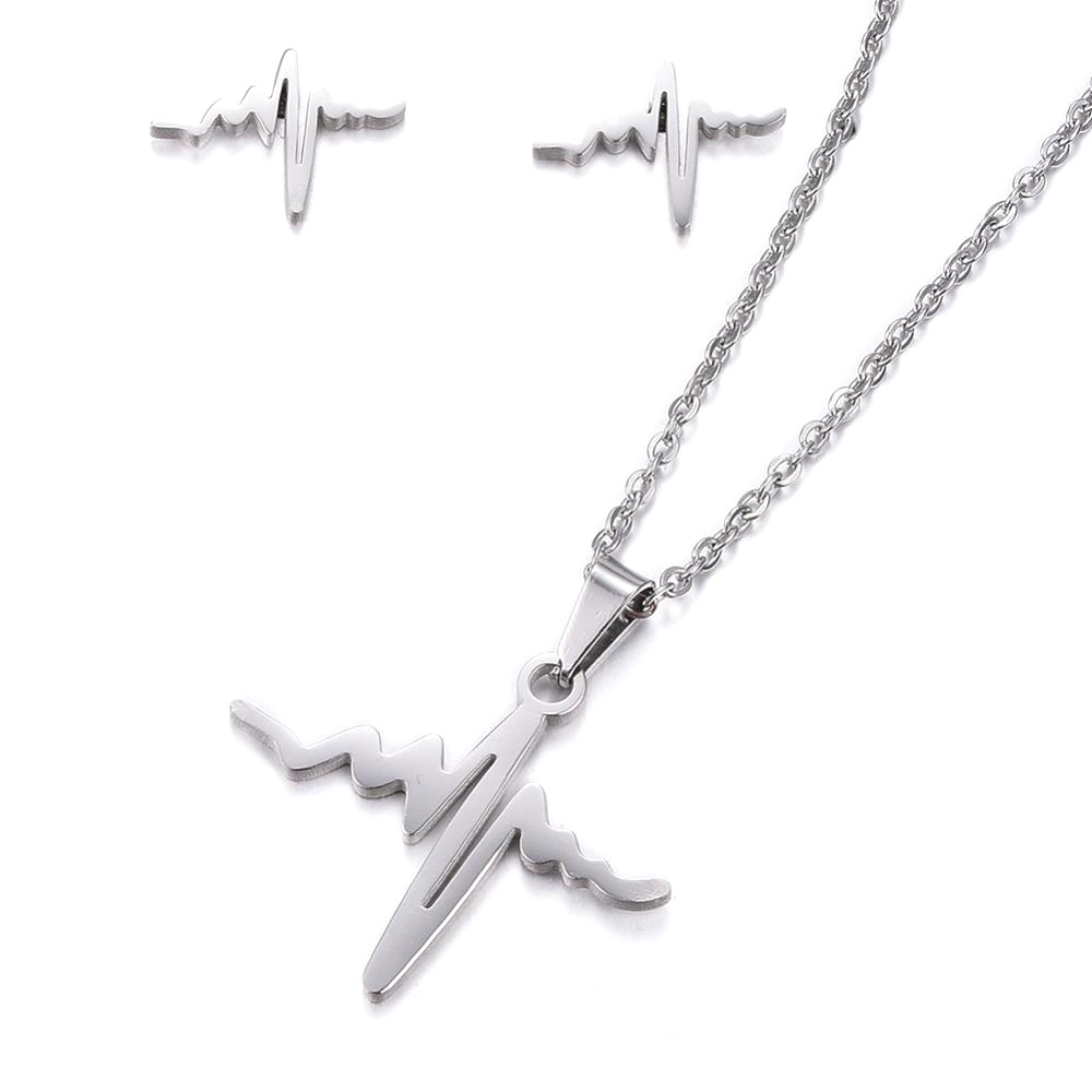 Setul Cercei si Colier Heartbeat este confecționat integral din oțel inoxidabil, material nonalergic. Poate fi asortat cu ușurință la o cămașă albă și o pereche de jeansi sau la o rochie simplă de seară.