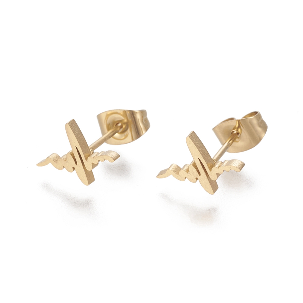 Sunt confecționați din oțel inoxidabil electroplacat cu auriu, material hipoalergenic, cercei waterproof, rezistenți la apă.