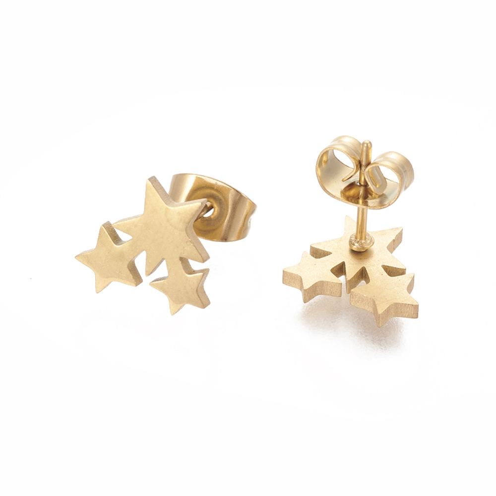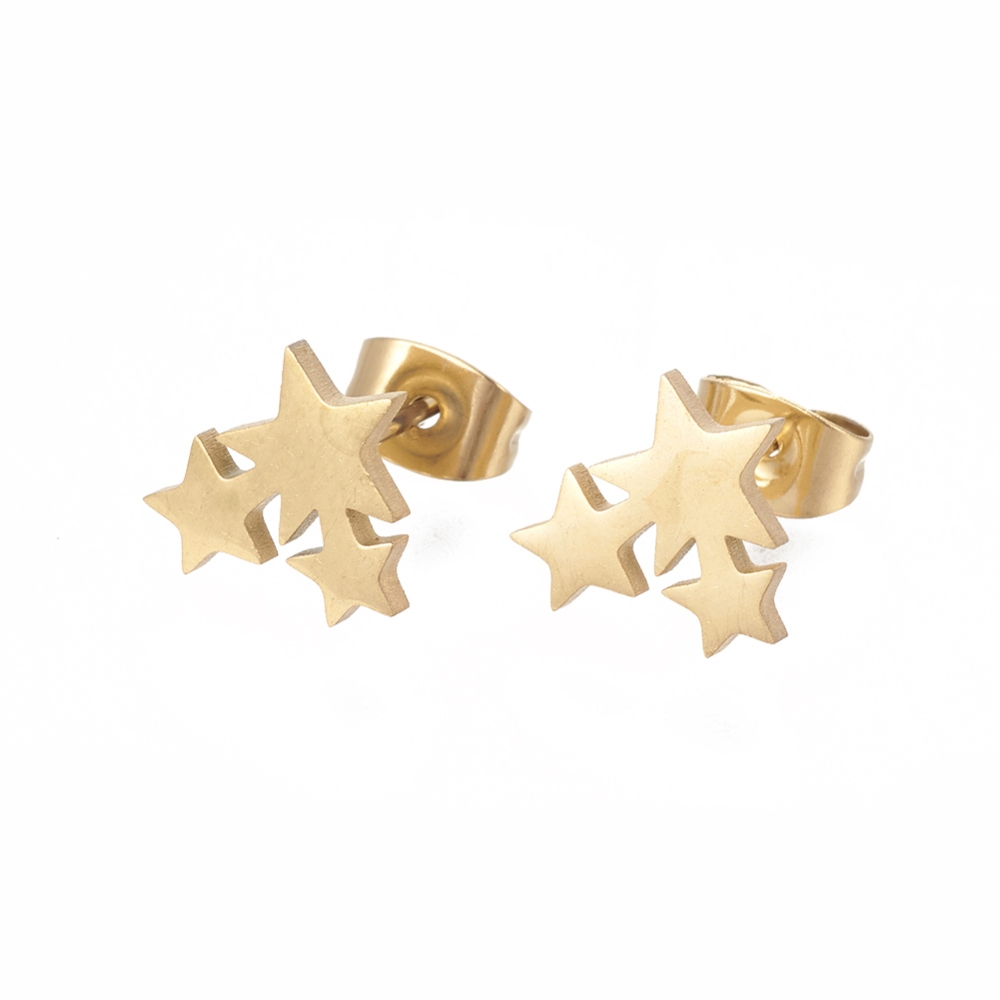 Buchetul de stele aurii fac parte din Colecția Minimal, sunt o pereche de cercei populari, simpli și de efect, confecționați din oțel inoxidabil electroplacat cu auriu, material hipoalergenic, cercei waterproof, rezistenți la apă.