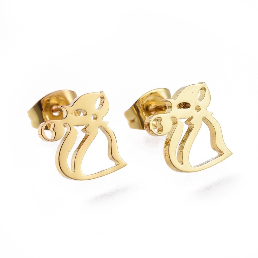 Cerceii Pisică fac parte din Colecția Minimal, sunt o pereche de cercei populari, simpli și de efect, confecționați din oțel inoxidabil electroplacat cu auriu, material hipoalergenic, cercei waterproof, rezistenți la apă.