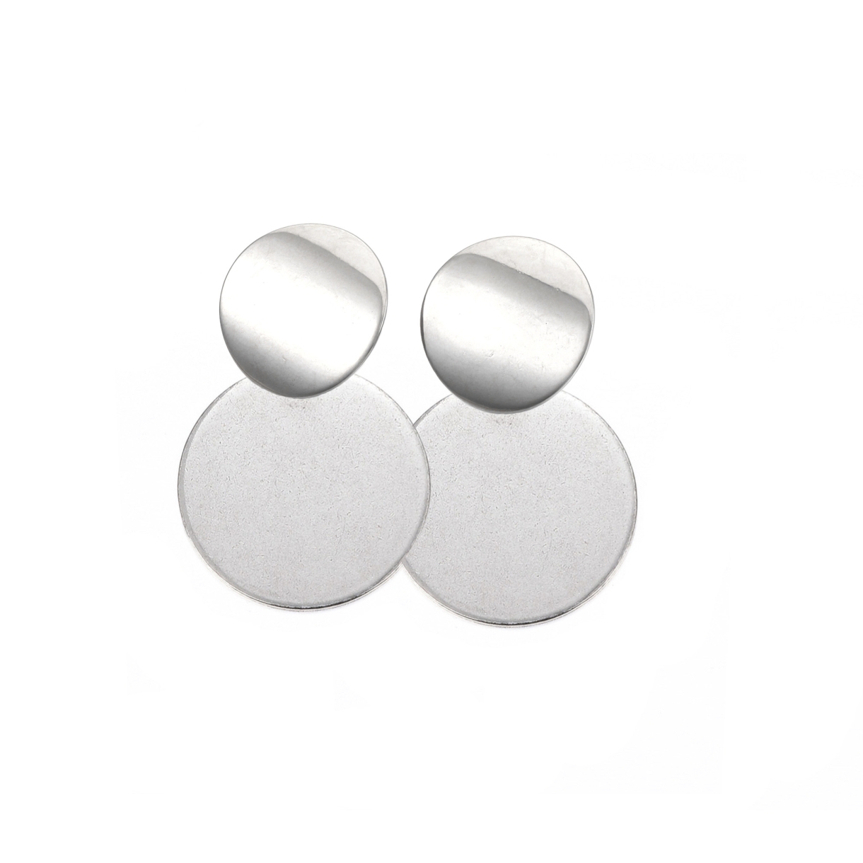 Cerceii Twin Circle geometrici și asimetrici, confecționați din inox sunt potriviți pentru o seară în oraș la o ținută smart casual.