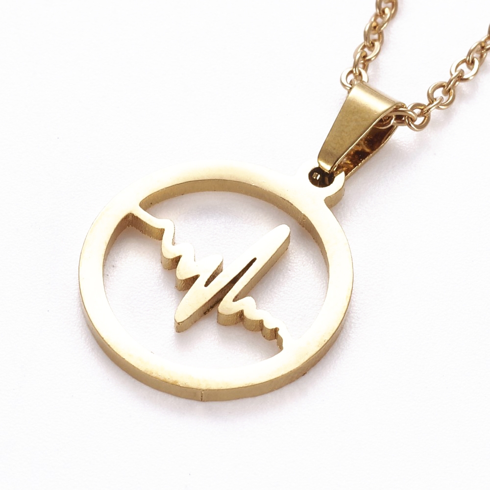 Setul Cercei și Colier Heartbeat auriu este confecționat integral din oțel inoxidabil electroplacat cu auriu, material nonalergic. Poate fi asortat cu ușurință la o cămașă albă și o pereche de jeansi sau la o rochie simplă de seară.