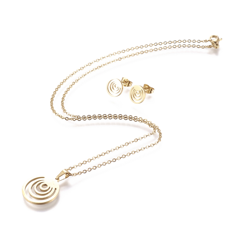 Cerceii și colierul sunt confecționate din oțel inoxidabil electroplacat cu auriu, material hipoalergenic.