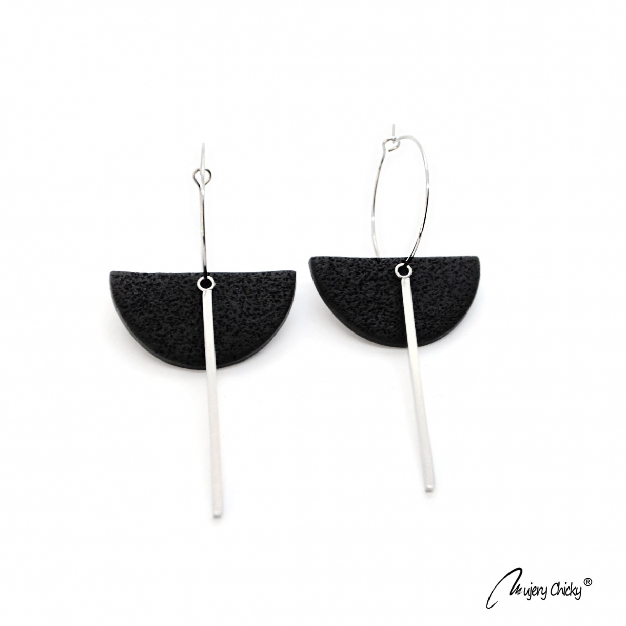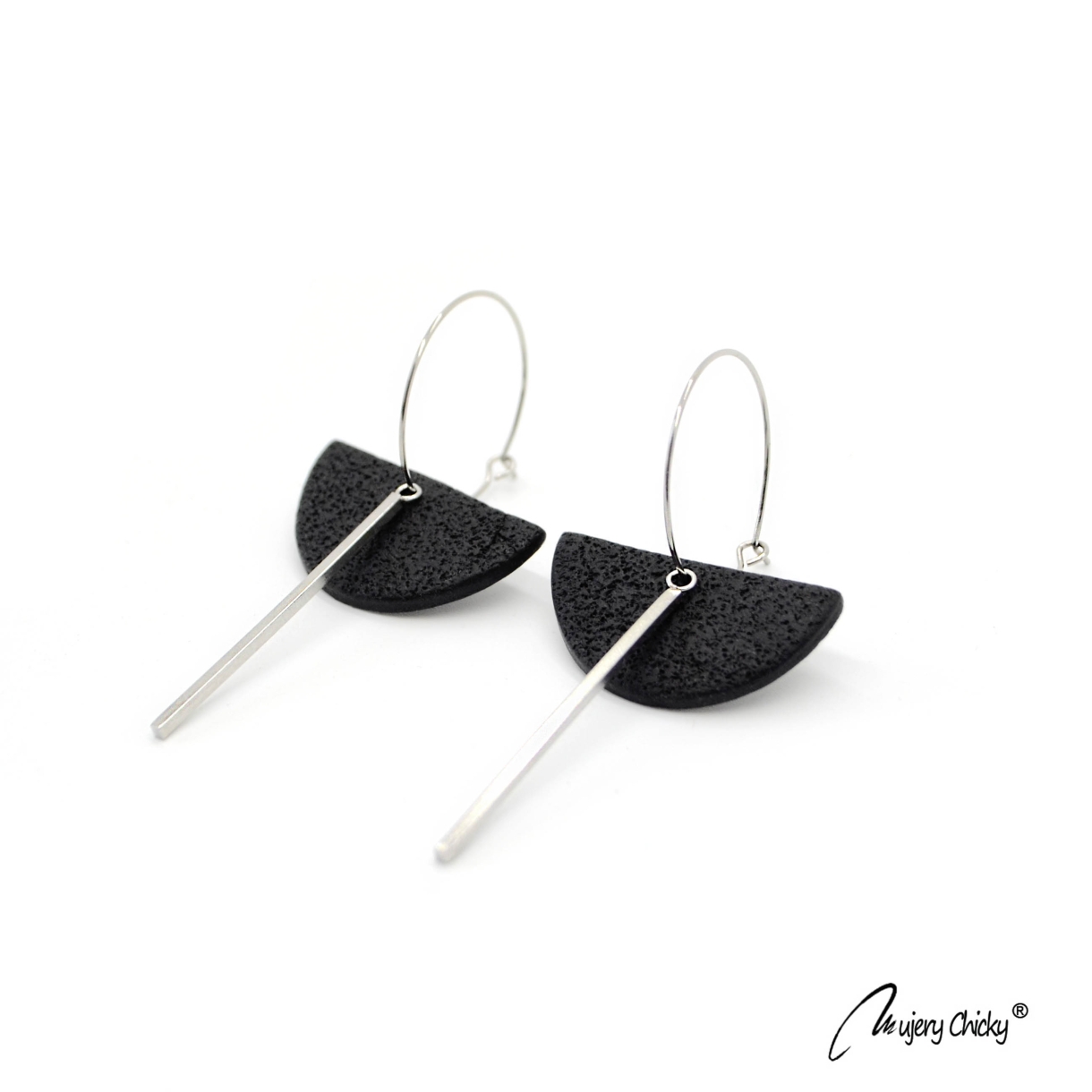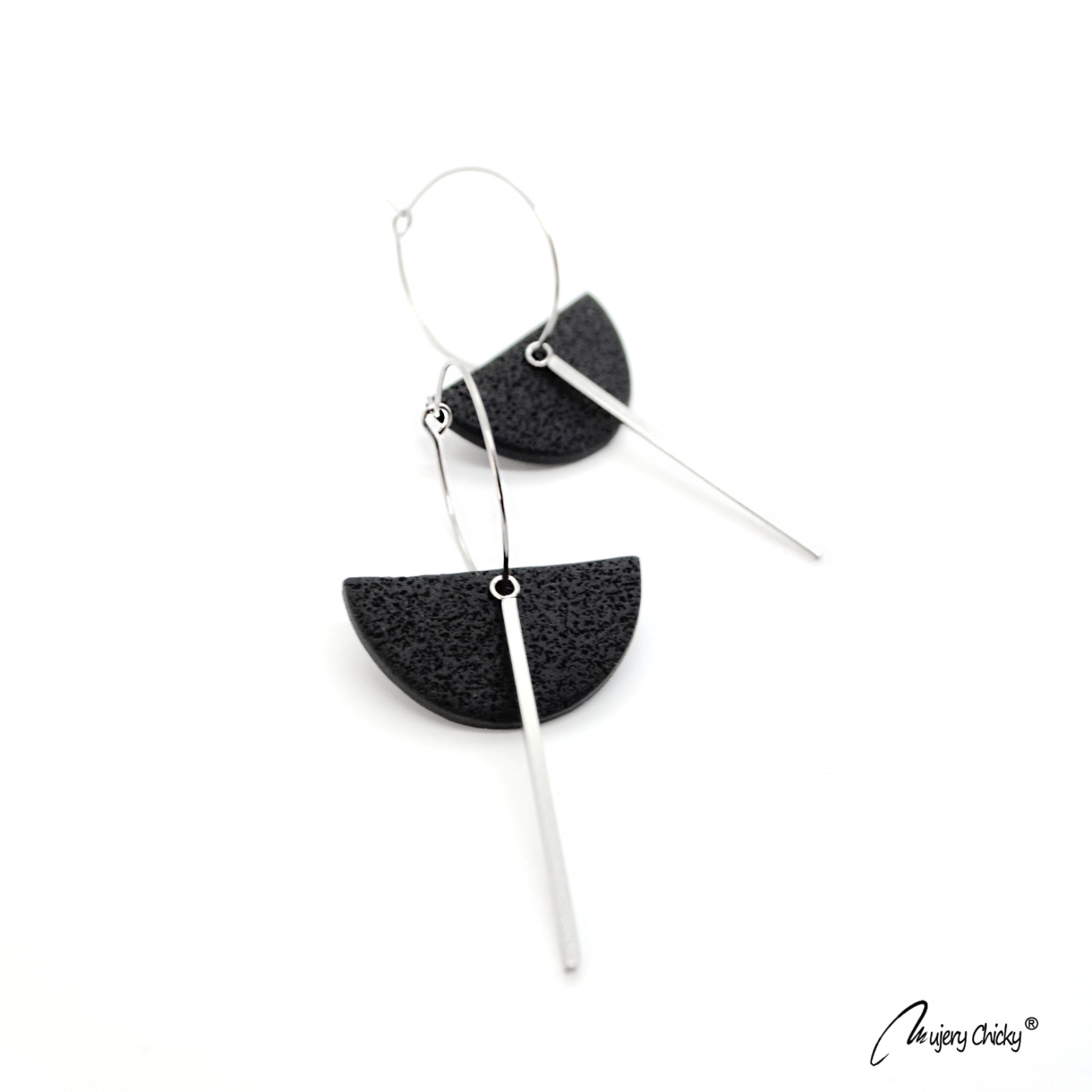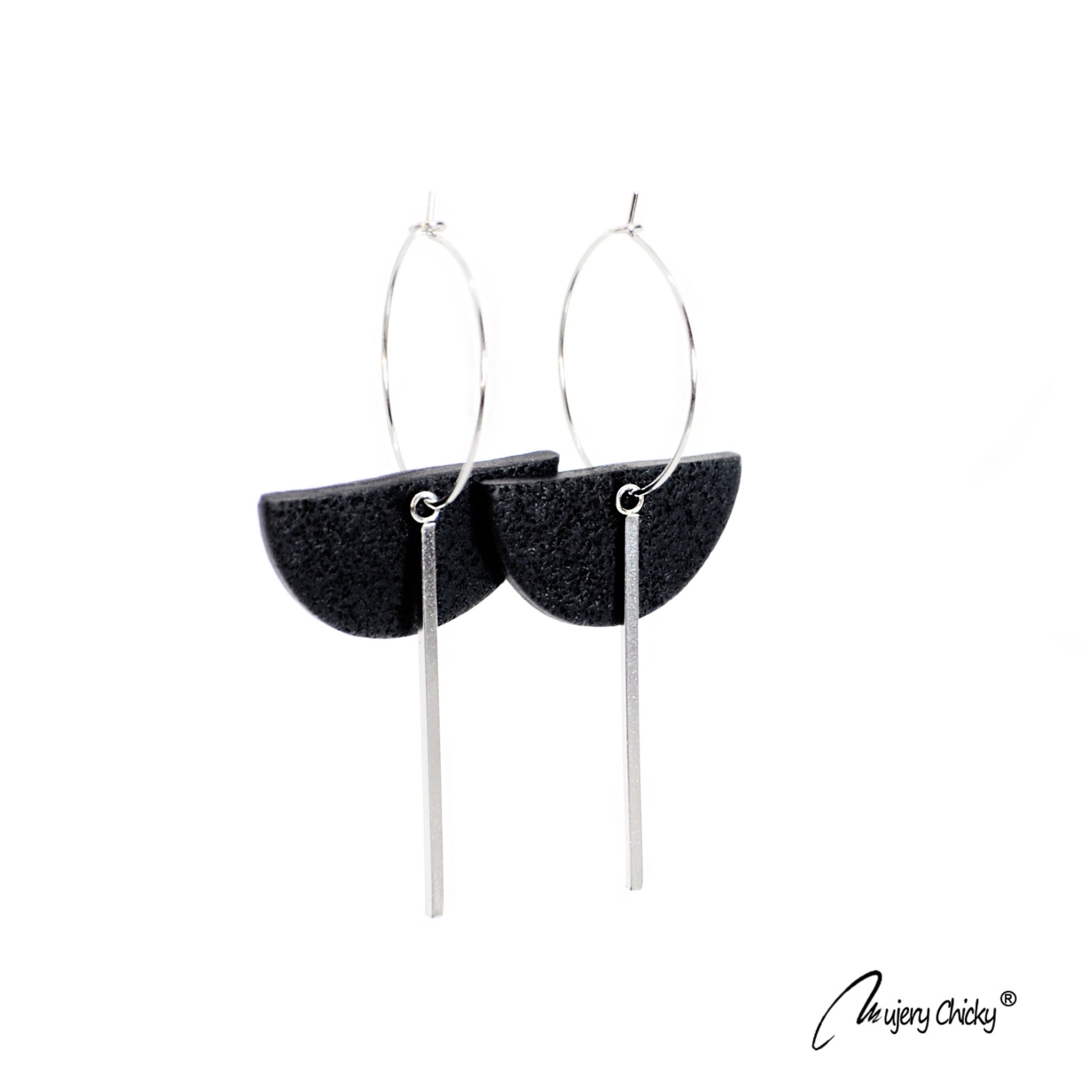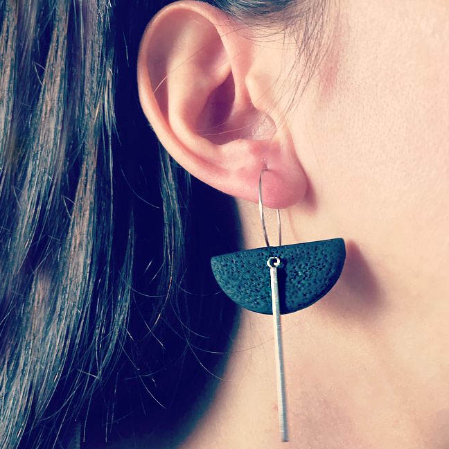 Cerceii geometrici asimetrici Isra Hoop fac parte din Colecția Underground, sunt lucrați manual din lut polimeric texturat cu aspect de piele și oțel inoxidabil.