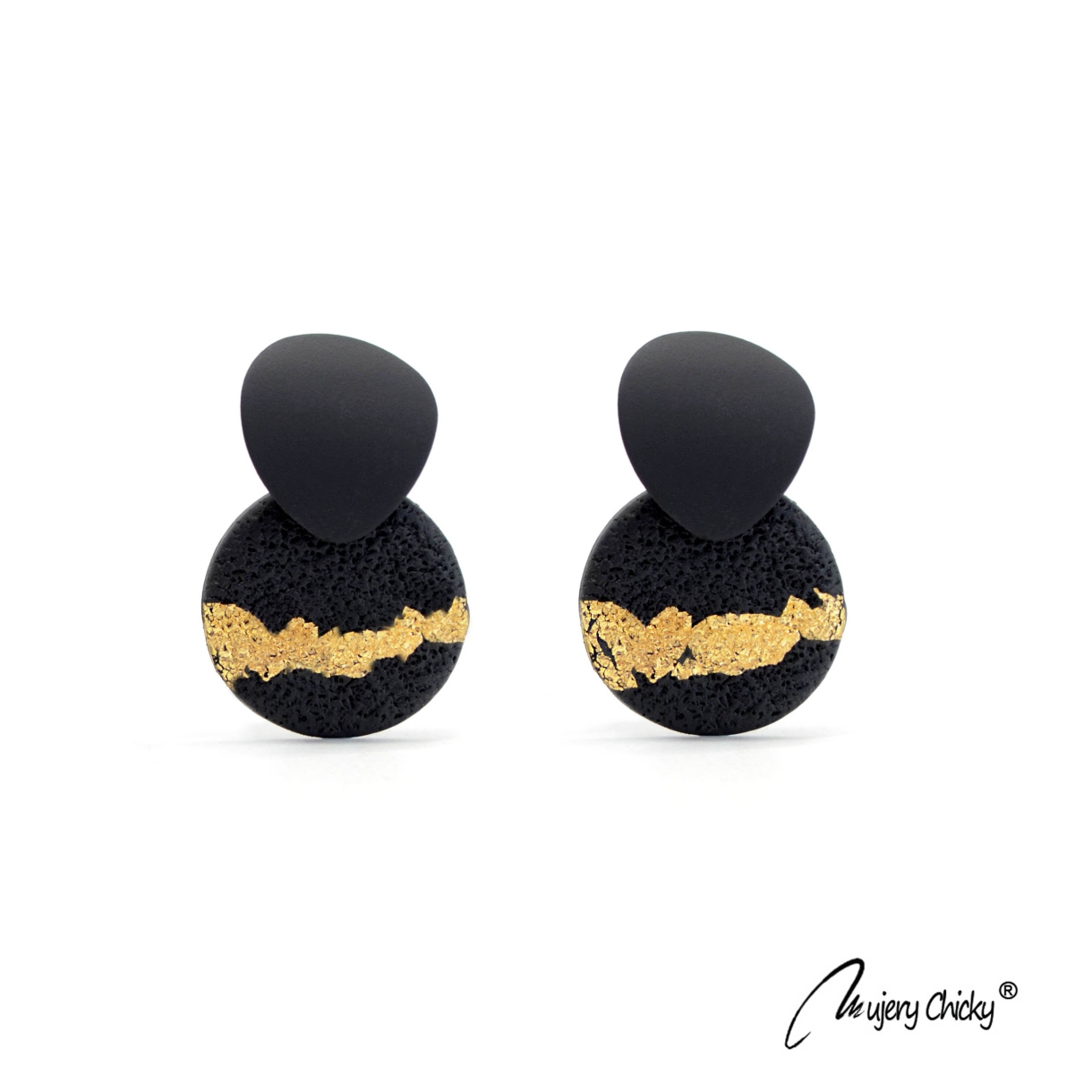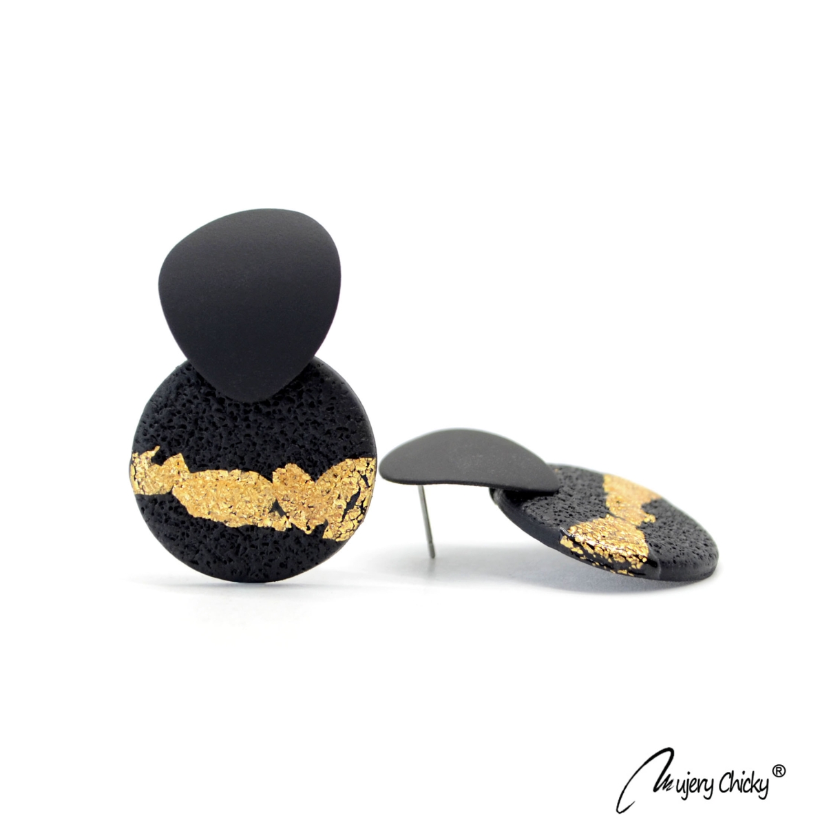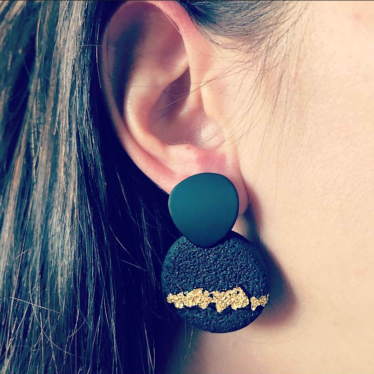 Cerceii Esra Circle Auriu fac parte din Colecția Underground, sunt lucrați manual din lut polimeric texturat, placat cu foiță de aur sigilată cu rășină UV montați pe bază din oțel inoxidabil electroplacat cu auriu.