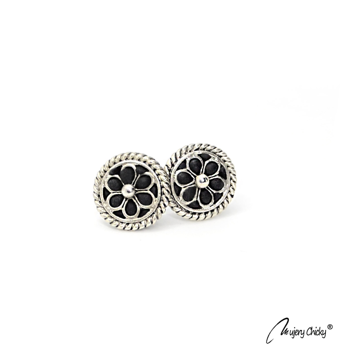 Cerceii Floricică Silver - Black în formă de floare, lucrați manual sunt discreți și de efect. Păstrează pentru tine cerceii handmade deosebiți și eleganți sau oferă-i cadou unei persoane dragi!