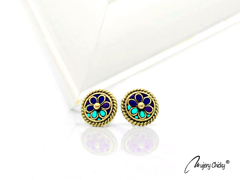 Cerceii Floricică - Navy în formă de floare, lucrați manual sunt discreți și de efect. Păstrează pentru tine cerceii handmade deosebiți și eleganti sau oferă-i cadou unei persoane dragi!
