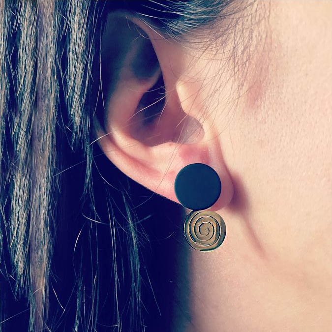 Cerceii Circle Vortex fac parte din Colecția Underground, sunt lucrați manual din oțel inoxidabil electroplacat cu auriu.