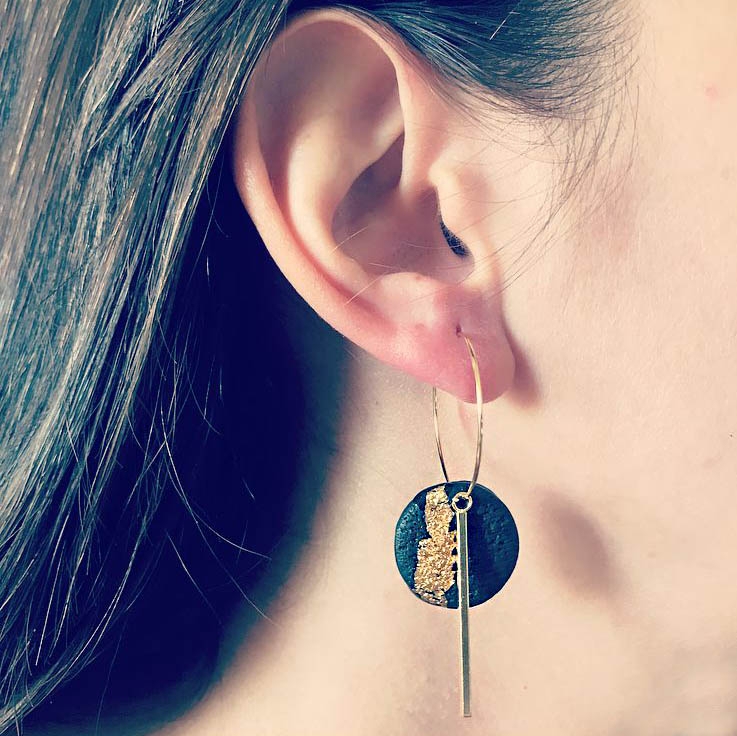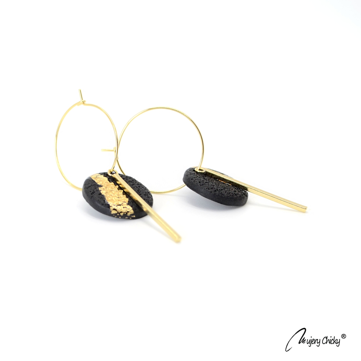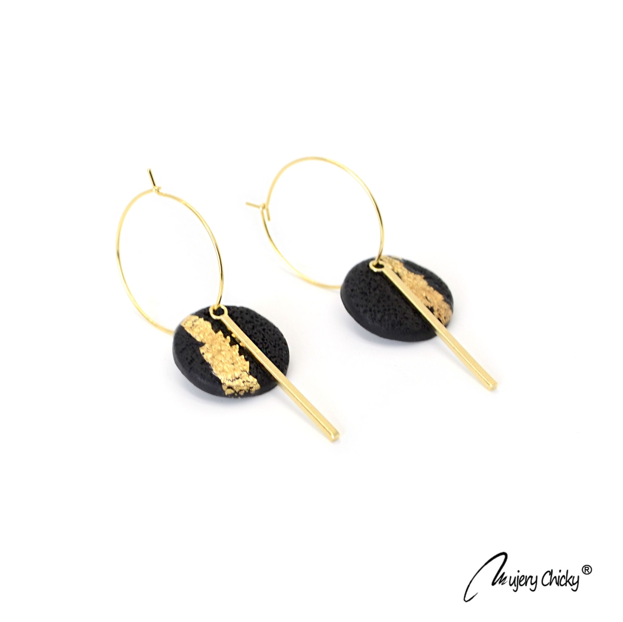 Cerceii Manan Round Line Auriu fac parte din Colecția Underground, sunt lucrați manual din lut polimeric texturat cu aspect de piele, placat cu foiță de aur sigilată cu rășină UV, montură cu oțel inoxidabil electroplacat cu auriu.
