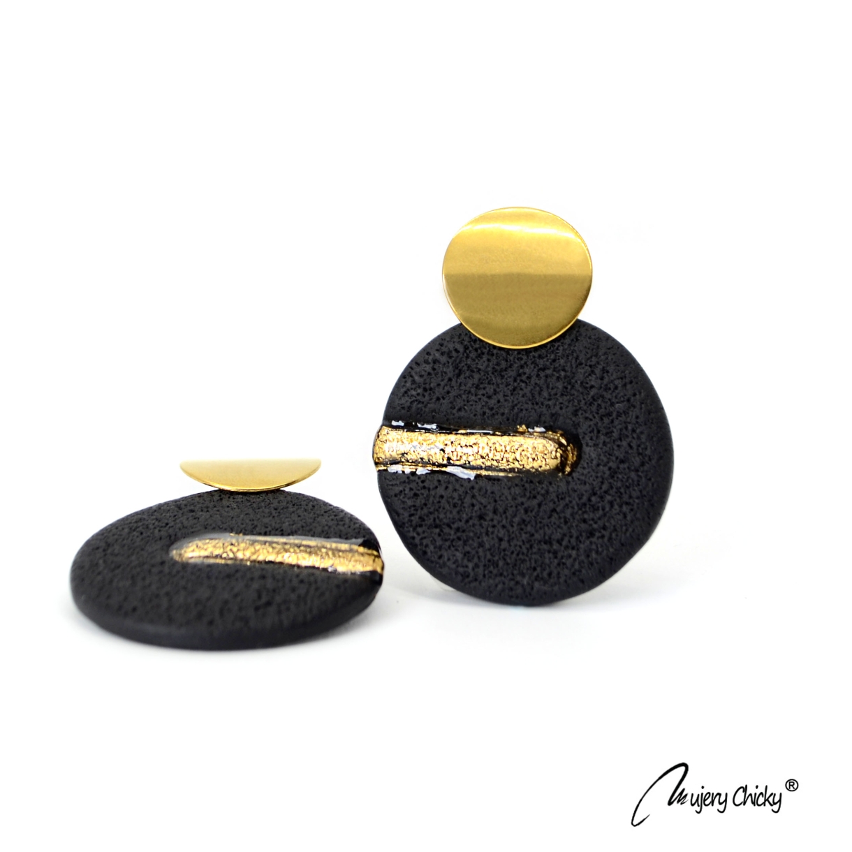 Cerceii Shenol fac parte din Colecția Underground, sunt lucrați manual din lut polimeric texturat cu aspect de piele, placat cu foiță de aur sigilată cu rășină UV, montură cu oțel inoxidabil.