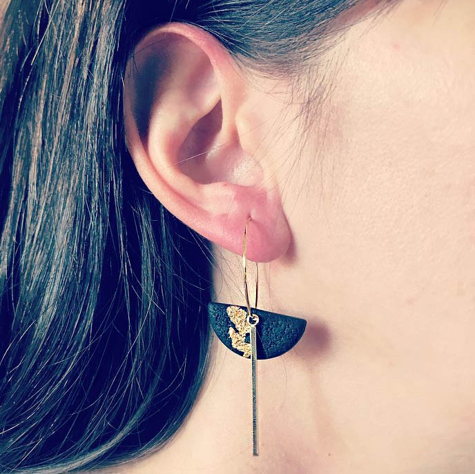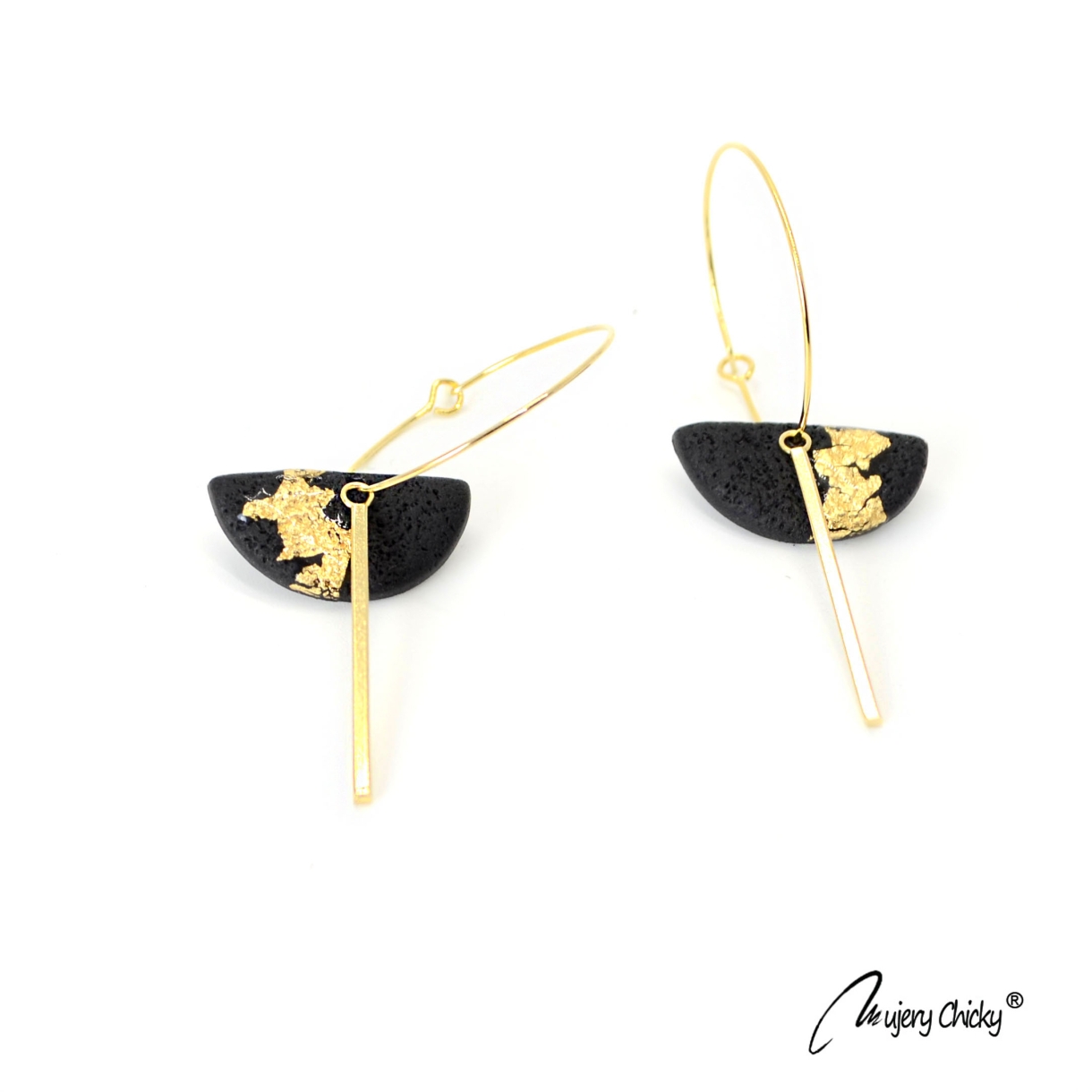 Cerceii Lido Auriu fac parte din Colecția Underground, sunt lucrați manual din lut polimeric texturat cu aspect de piele, placat cu foiță de aur sigilată cu rășină UV, montură cu oțel inoxidabil electroplacat cu auriu.