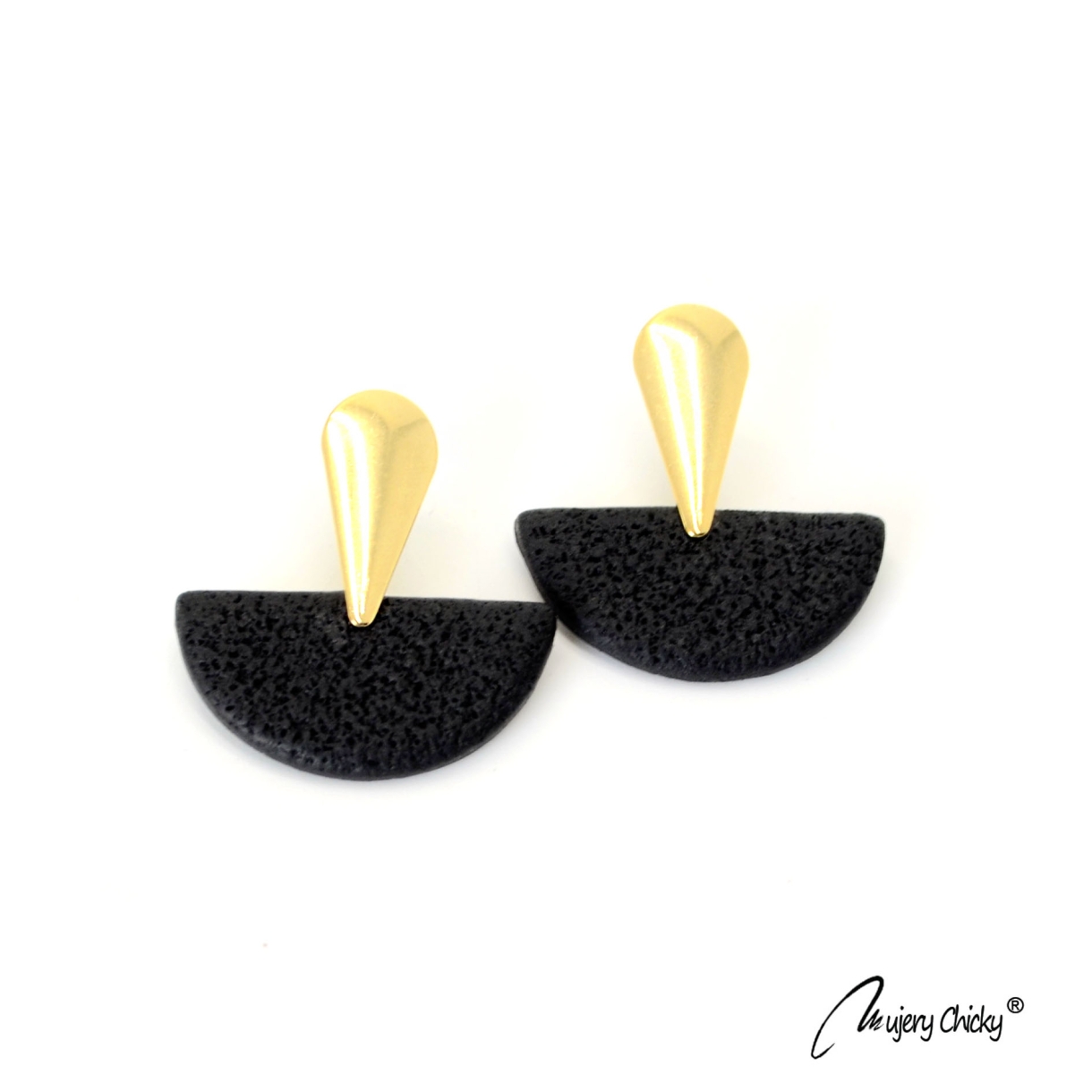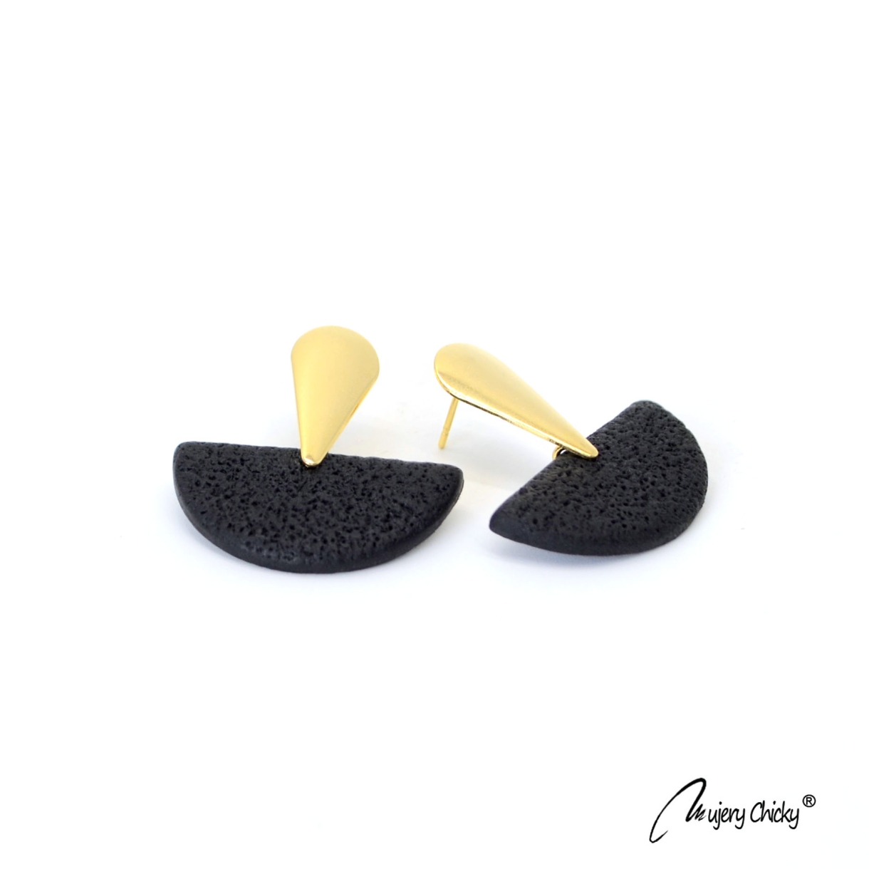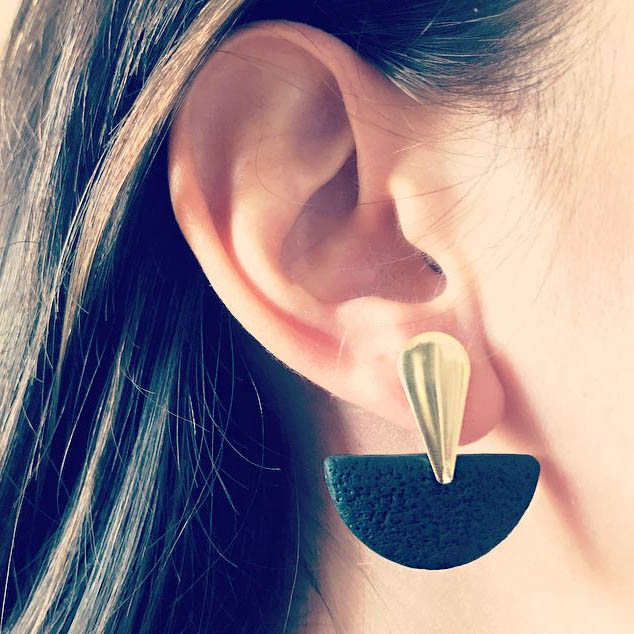 Cerceii geometrici Lea Auriu fac parte din Colecția Underground, sunt lucrați manual din lut polimeric texturat cu aspect de piele și oțel inoxidabil electroplacat cu auriu.