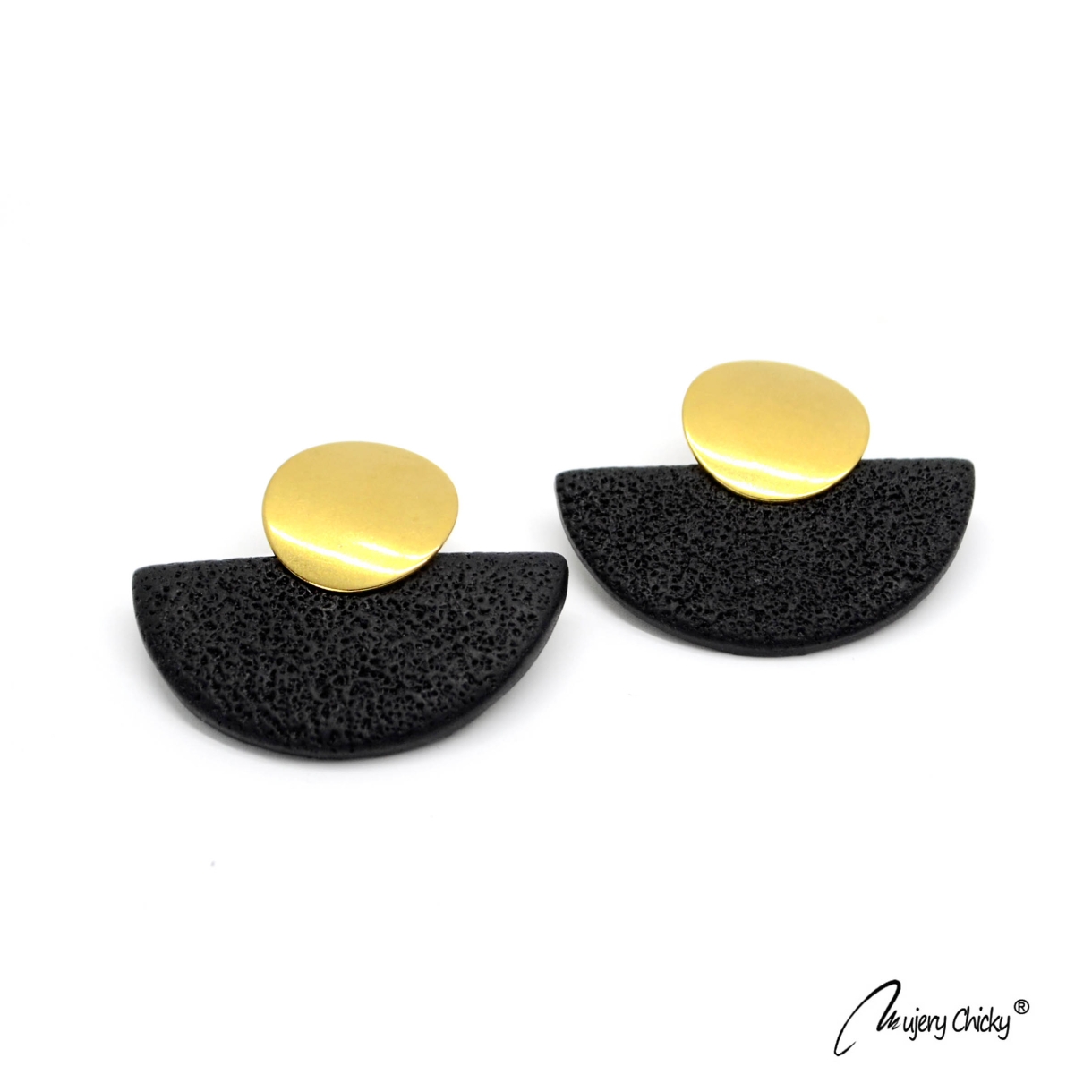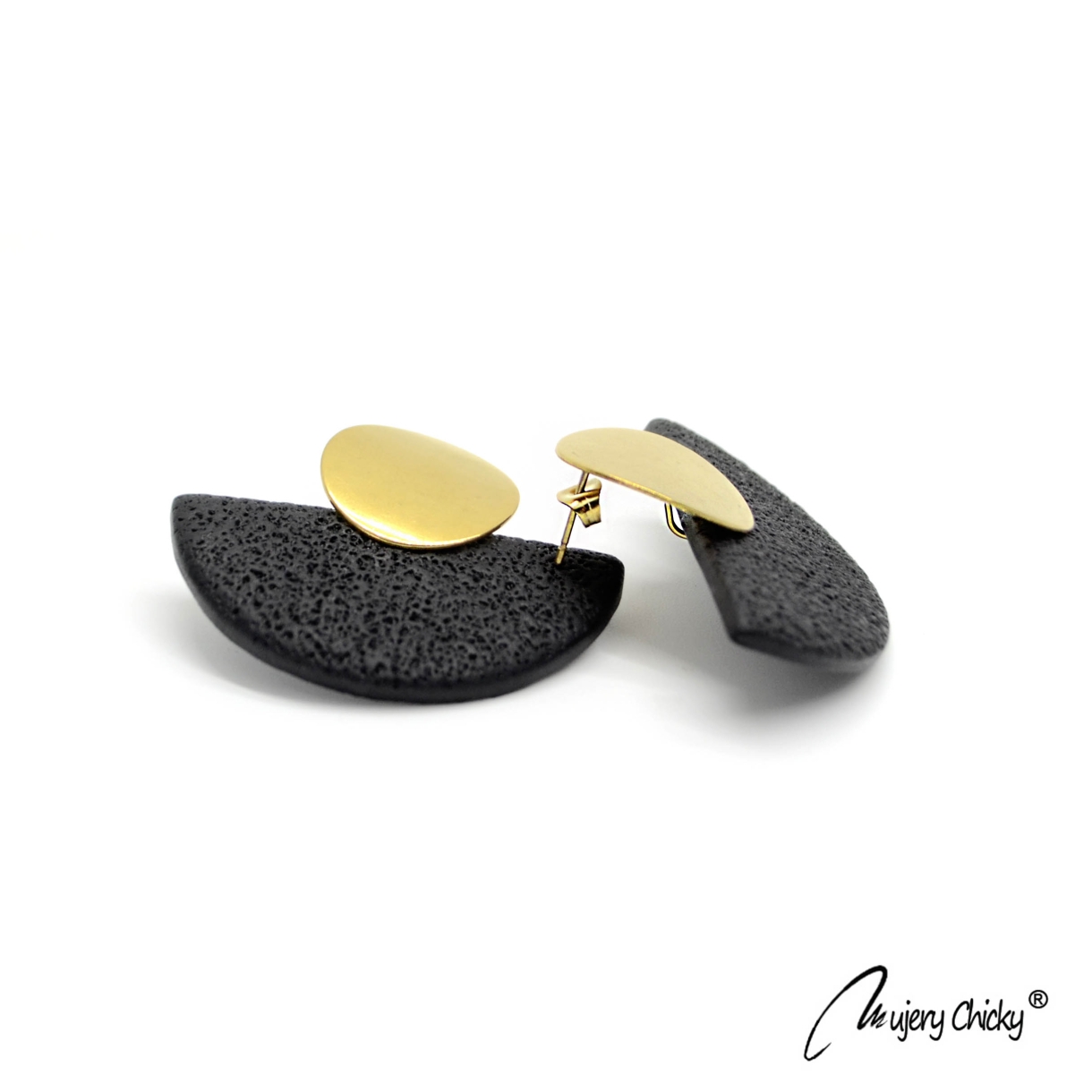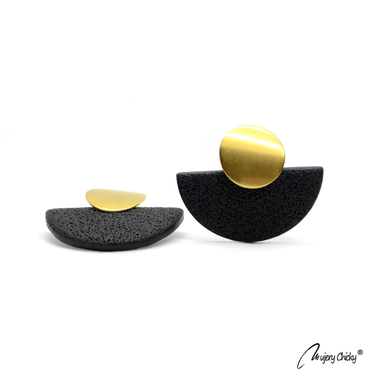 Cerceii geometrici asimetrici Daruka Auriu fac parte din Colecția Underground, sunt lucrați manual din lut polimeric texturat cu aspect de piele și oțel inoxidabil electroplacat cu auriu.